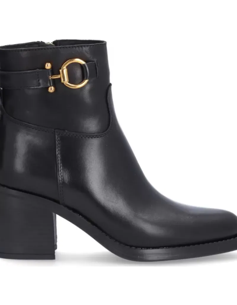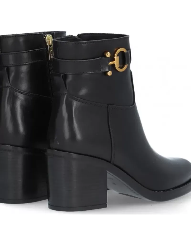 Botin Para Femme Alpe Leyna, Fabricado En Piel (Becerro) De Color Negro Con Tacon De 7 Cm, Suela Antideslizante Y Puntera Redonda, Con Cierre Mediante Cremallera Y Cana Baja.