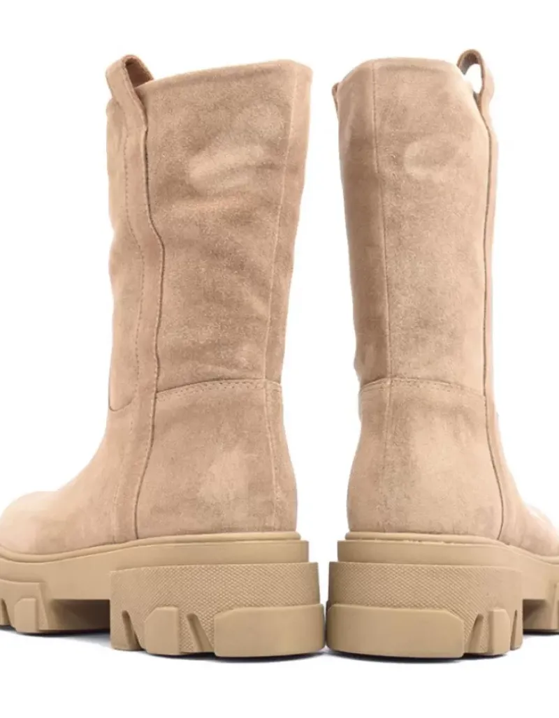 Botin Para Mujer Alpe Liverpool, Fabricado En Piel (Baby Silk) De Color Canela Con Tacon De 5 Cm, Suela Antideslizante Y Puntera Redonda, Sin Cierre Y Cana Media.