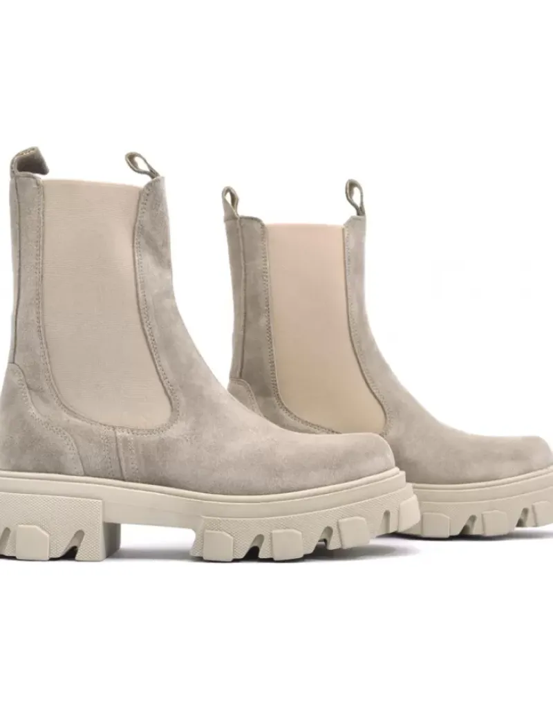 Botin Para Mujer Alpe Liverpool, Fabricado En Piel (Baby Silk) De Color Polar Con Tacon De 5 Cm, Suela Antideslizante Y Puntera Redonda, Sin Cierre Y Cana Media.