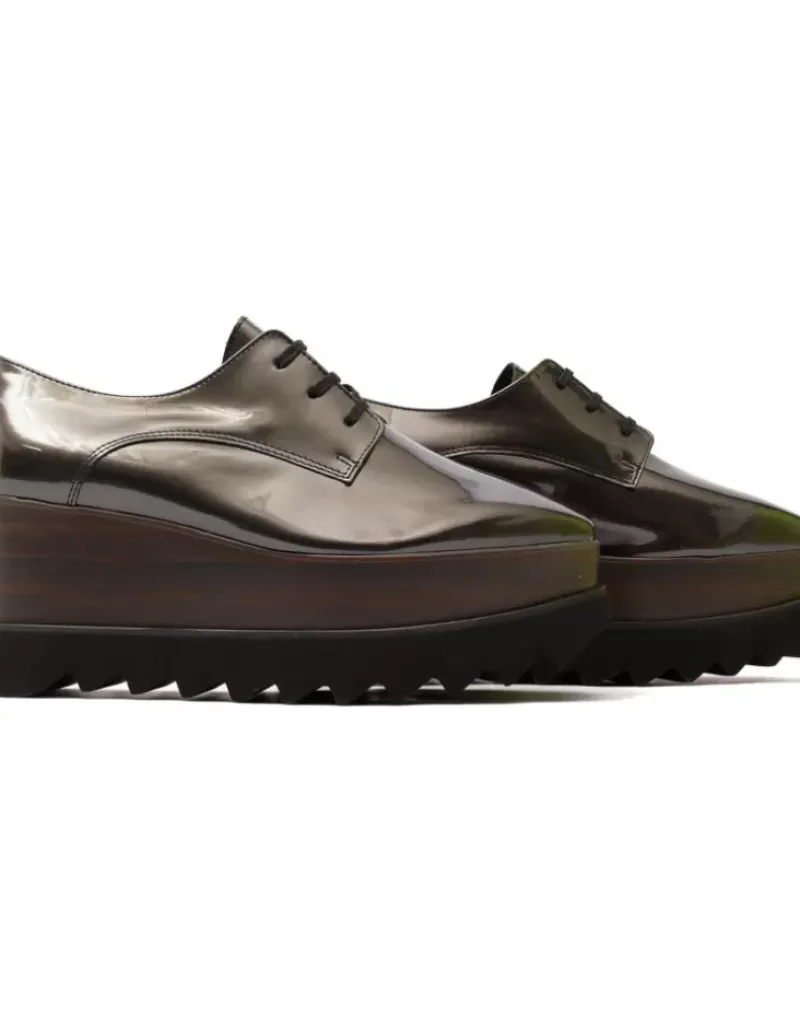 Zapato Para Mujer Alpe London, Fabricado En Piel (Giove) De Color Antracita Sin Tacon, Suela Antideslizante Y Puntera Redonda, Con Cierre Mediante Cordon.