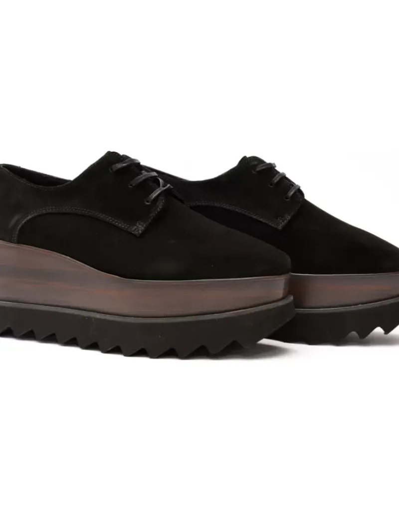 Zapato Para Mujer Alpe London, Fabricado En Piel (Baby Silk) De Color Negro Sin Tacon, Suela Antideslizante Y Puntera Redonda, Con Cierre Mediante Cordon.
