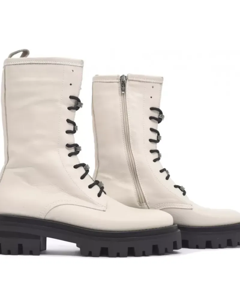 Bota Para Femme Alpe Monza, Fabricada En Piel (Seta) De Color Artico Con Tacon De 5 Cm, Suela Antideslizante Y Puntera Redonda, Con Cierre Mediante Cremallera Y Cana Media.