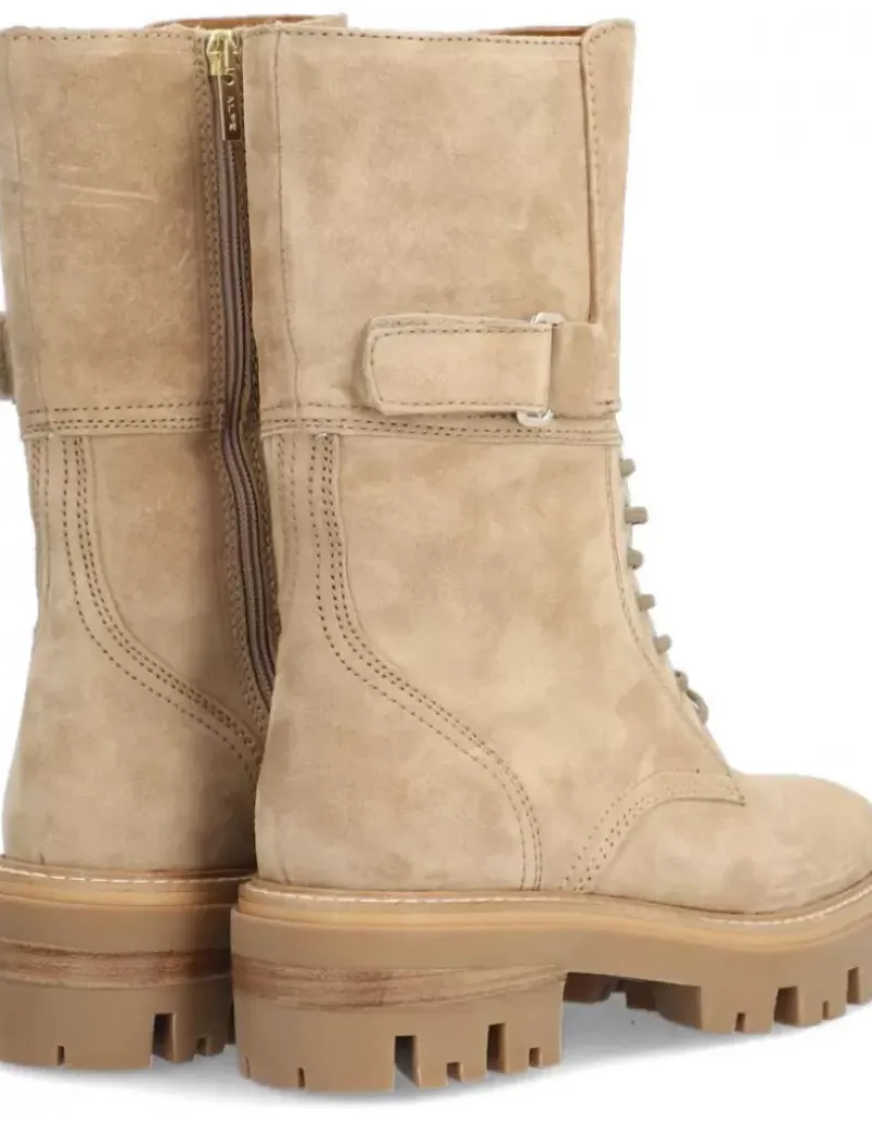 Bota Para Femme Alpe Monza, Fabricada En Piel (Baby Silk) De Color Noisette Con Tacon De 5 Cm, Suela Antideslizante Y Puntera Redonda, Con Cierre Mediante Cremallera Baja.