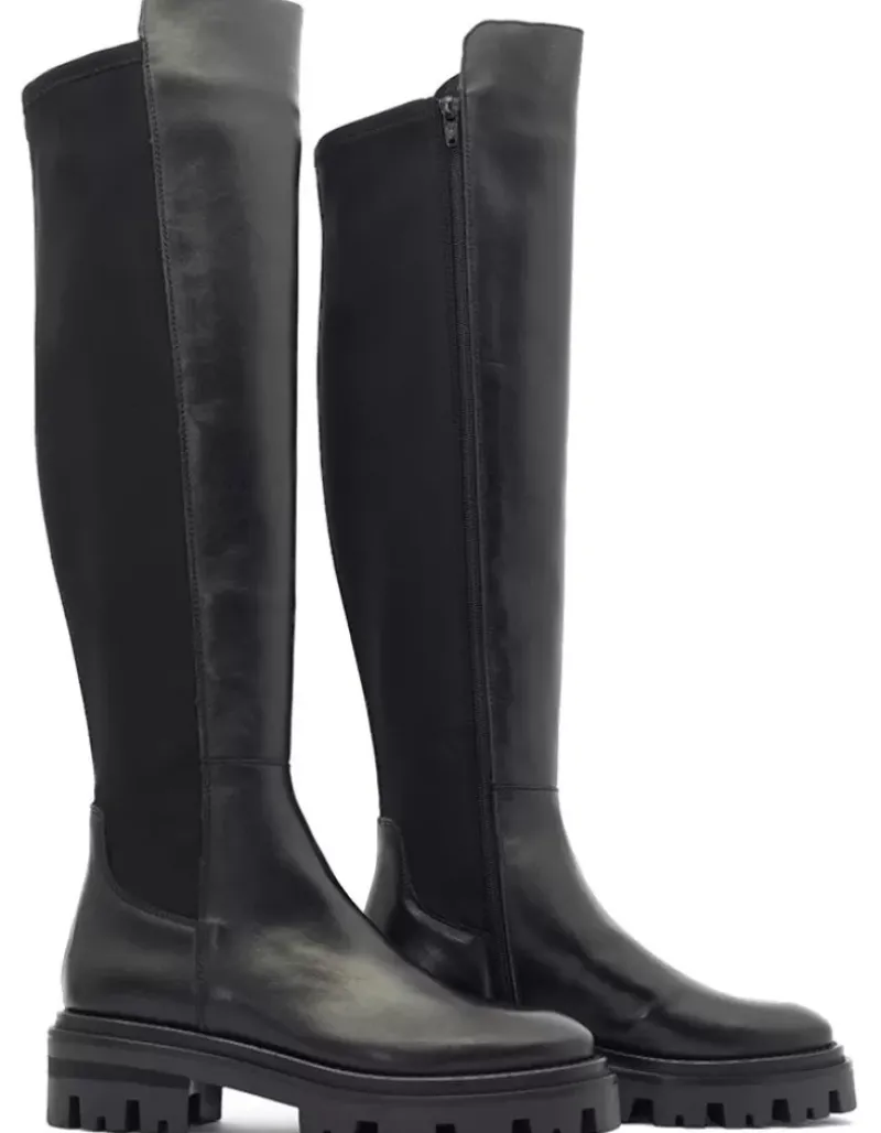 Bota Para Mujer Alpe Monza, Fabricada En Piel (Empire) De Color Negro Con Tacon De 5 Cm, Suela Antideslizante Y Puntera Redonda, Con Cierre Mediante Cremallera Y Cana Alta.