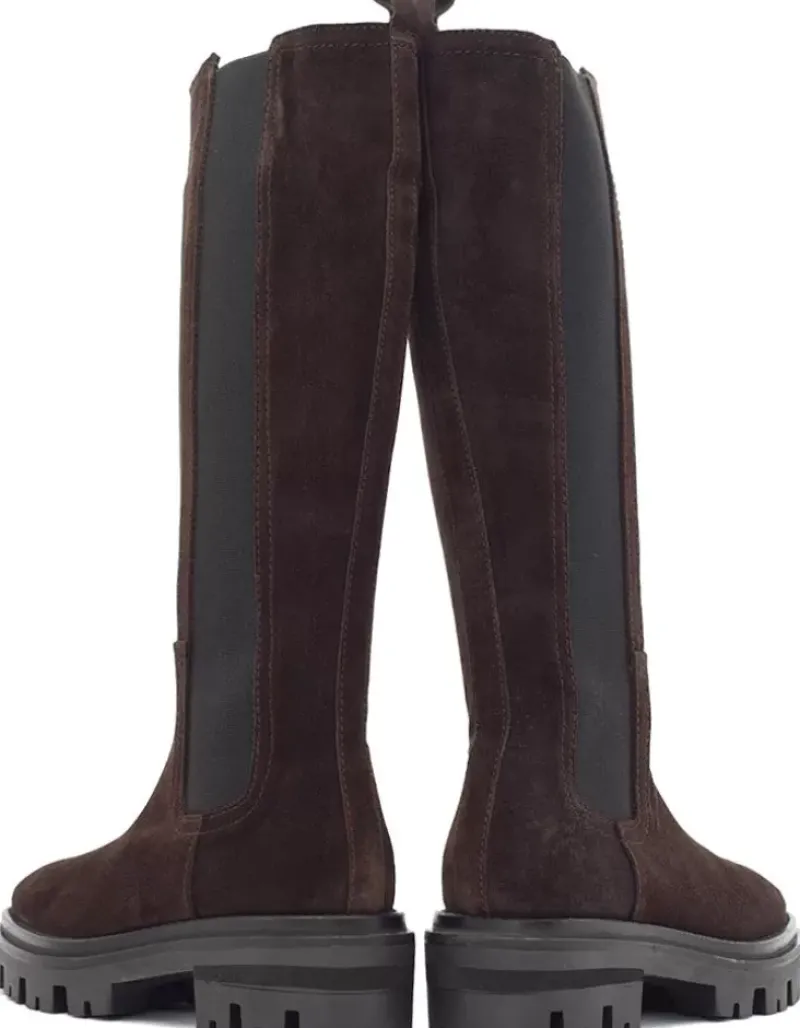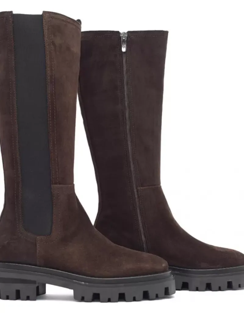 Bota Para Mujer Alpe Monza, Fabricada En Piel (Baby Silk) De Color Cafe Con Tacon De 5 Cm, Suela Antideslizante Y Puntera Redonda, Con Cierre Mediante Cremallera Y Cana Alta.