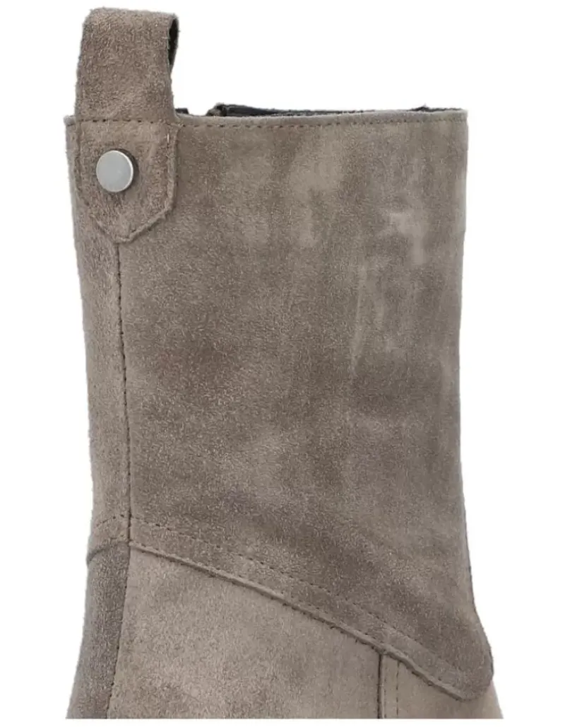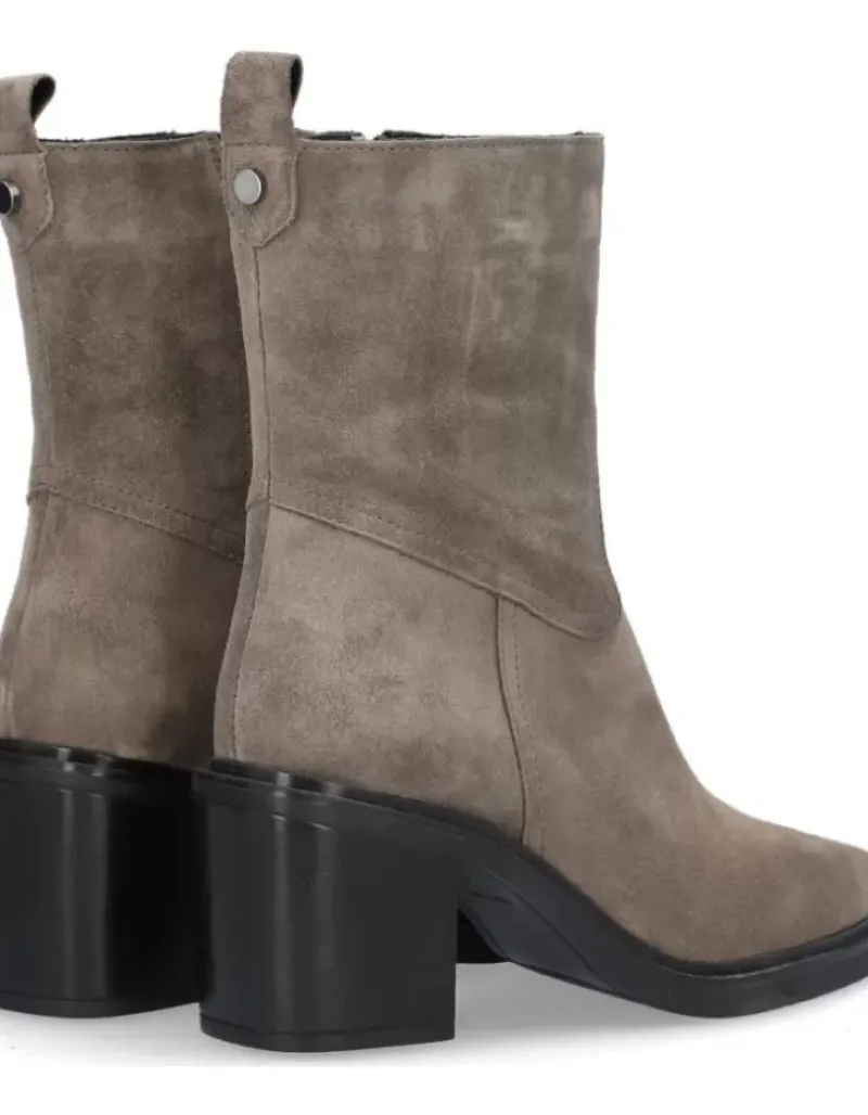 Botin Para Femme Alpe Naomi, Fabricado En Piel (Baby Silk) De Color Taiga Con Tacon De 8 Cm, Suela Antideslizante Y Puntera Afilada, Con Cierre Mediante Cremallera Y Cana Baja.
