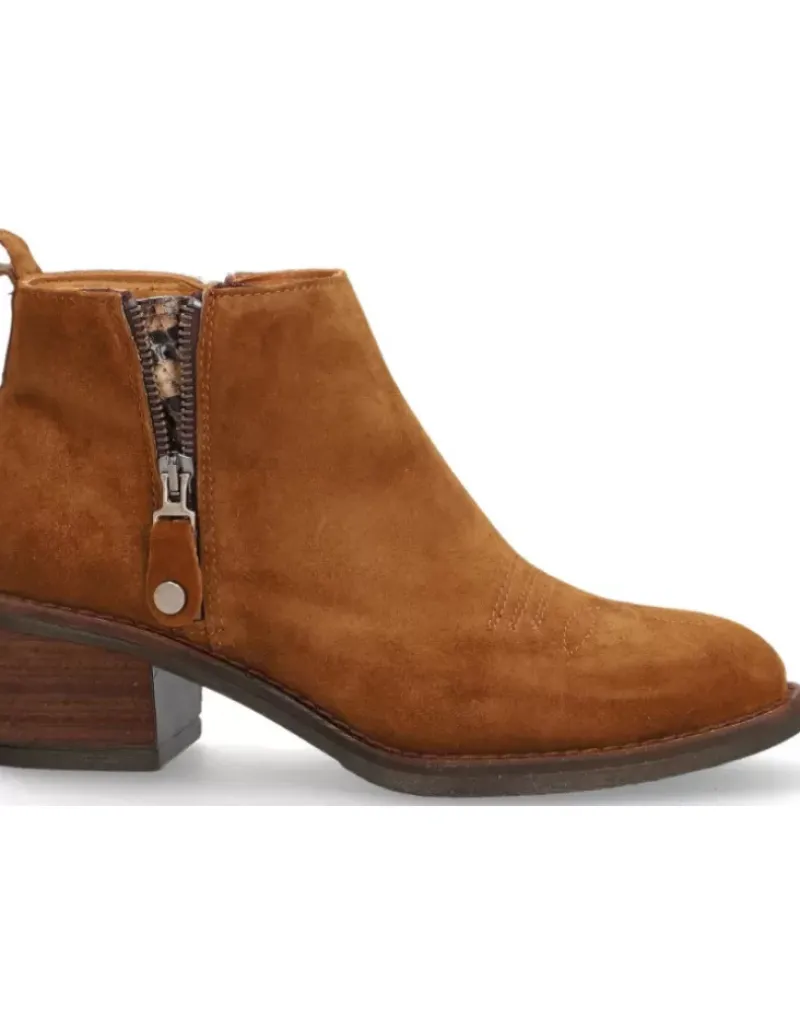 Botin Para Femme Alpe Nelly, Fabricado En Piel (Baby Silk) De Color Cuero Con Tacon De 4,5 Cm, Suela Antideslizante Y Puntera Redonda, Con Cierre Mediante Cremallera Y Cana Baja.