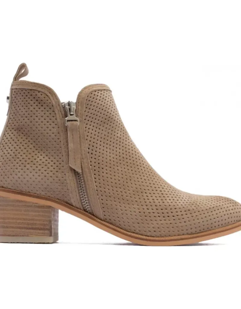 Botin Para Mujer Alpe Nelly, Fabricado En Piel (Baby Silk) De Color Dessert Con Tacon De 4,5 Cm, Suela Antideslizante Y Puntera Redonda, Con Cierre Mediante Cremallera Y Cana Baja.