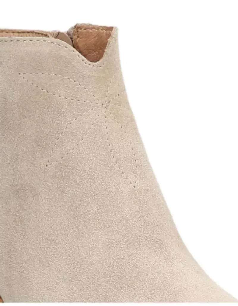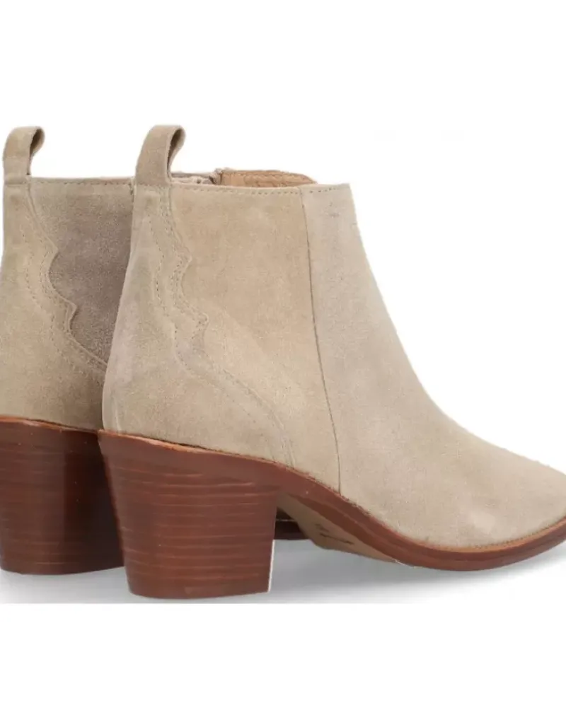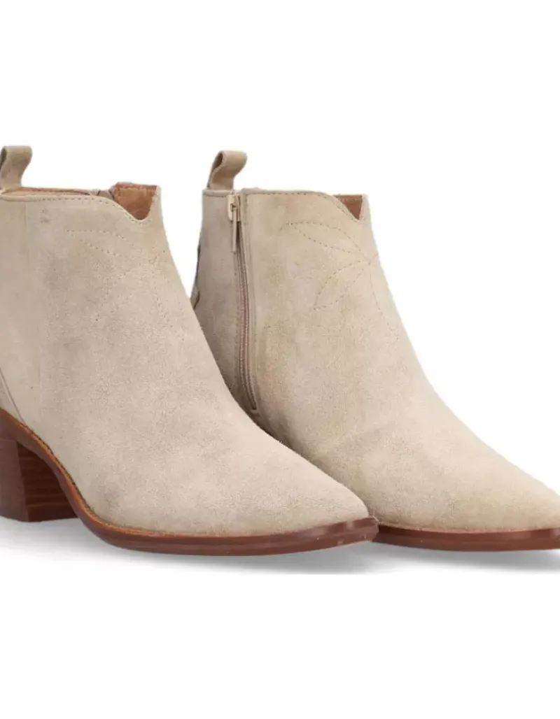 Botin Para Femme Alpe Nevada, Fabricado En Piel (Baby Silk) De Color Dessert Con Tacon De 5,5 Cm, Suela Antideslizante Y Puntera Afilada, Con Cierre Mediante Cremallera Y Cana Baja.