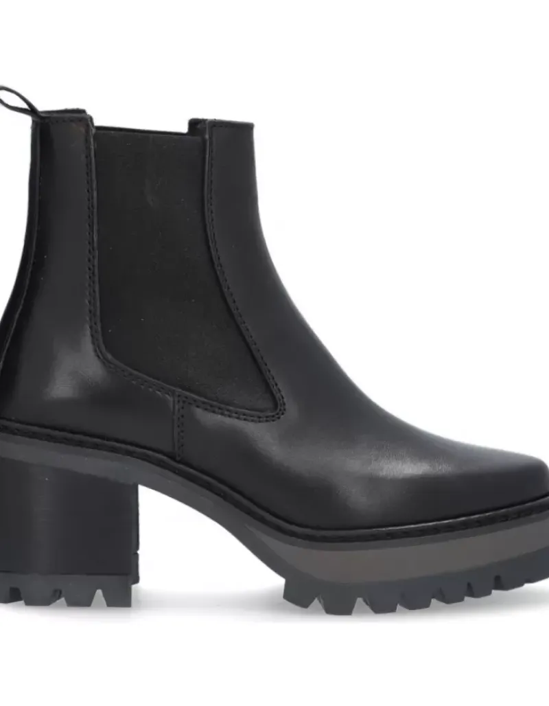 Botin Para Femme Alpe New Amelie, Fabricado En Piel (Becerro) De Color Negro Con Tacon De 7 Cm, Suela Antideslizante Y Puntera Redonda, Sin Cierre Y Cana Baja.