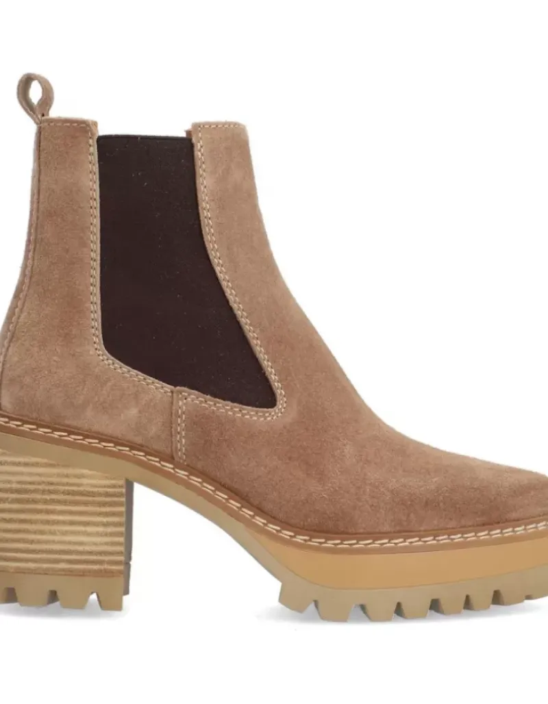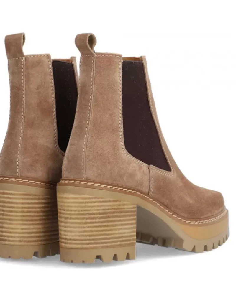 Botin Para Femme Alpe New Amelie, Fabricado En Piel (Baby Silk) De Color Bryce Con Tacon De 7 Cm, Suela Antideslizante Y Puntera Redonda, Sin Cierre Y Cana Baja.