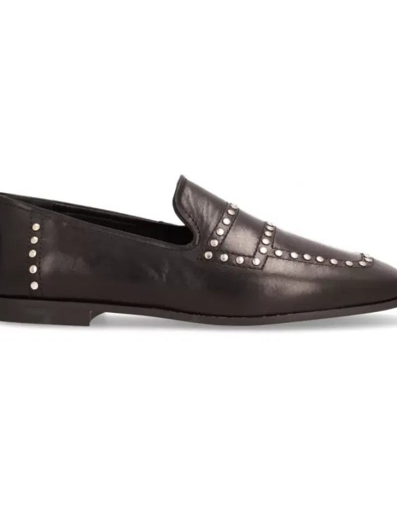 Mocasin Para Femme Alpe New Roma, Fabricado En Piel (Iseo) De Color Negro Con Sin Tacon De 1 Cm, Suela Antideslizante Y Puntera Cuadrada, Sin Cierre Y Cana Baja.