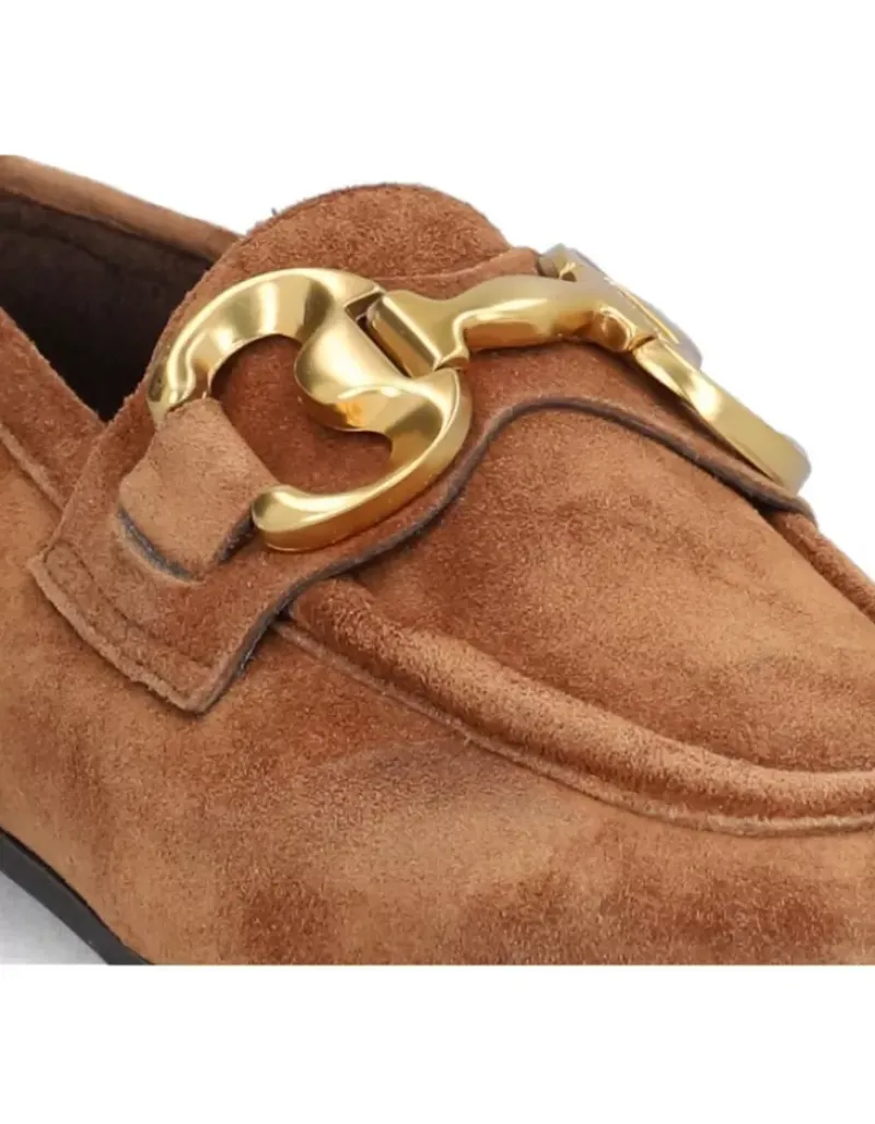 Mocasin Para Femme Alpe New Roma, Fabricado En Piel (Baby Silk) De Color Sella Con Tacon De 1 Cm, Suela Antideslizante Y Puntera Cuadrada, Sin Cierre.