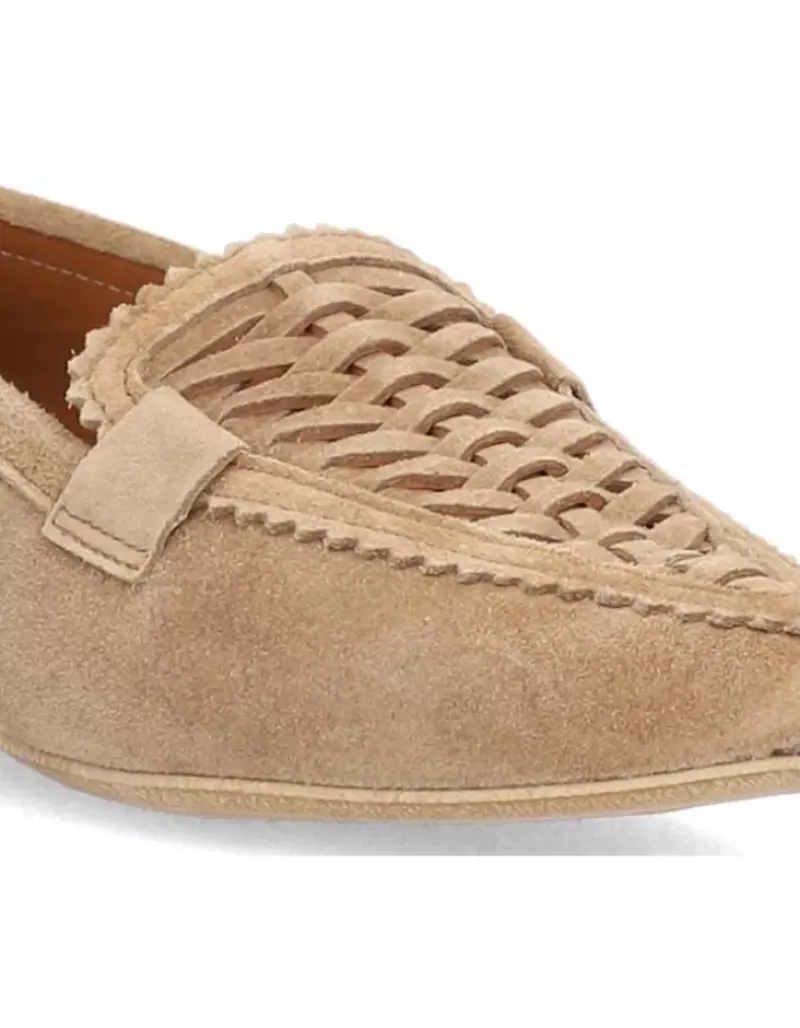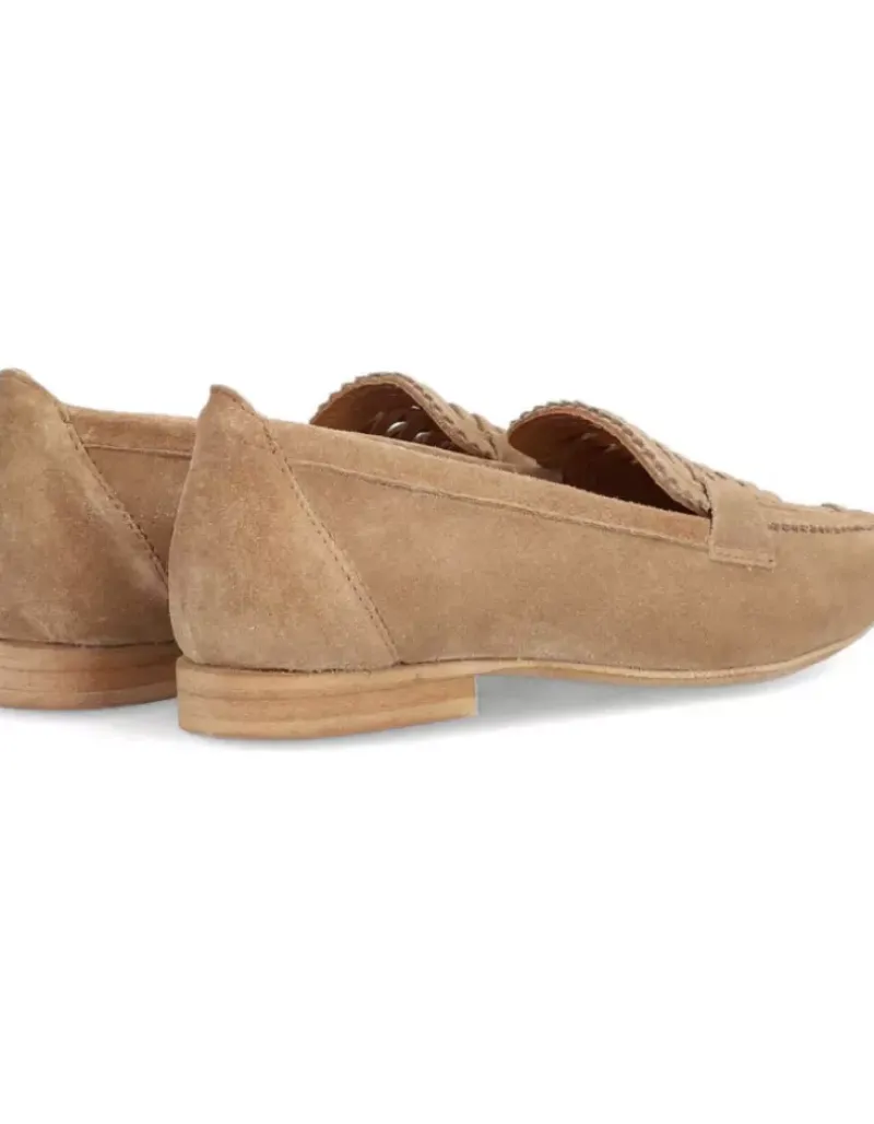 Mocasin Para Femme Alpe Niza, Fabricado En Piel (Baby Silk) De Color Cuero Con Tacon De 1 Cm, Suela Antideslizante Y Puntera Afilada, Sin Cierre.