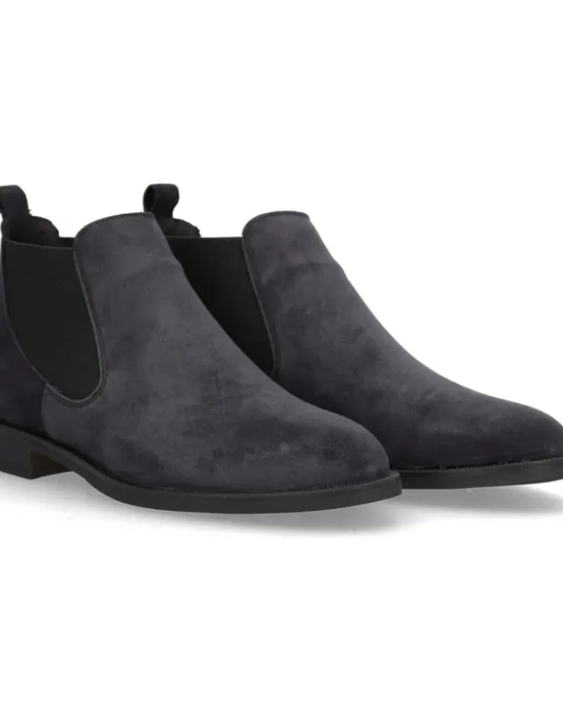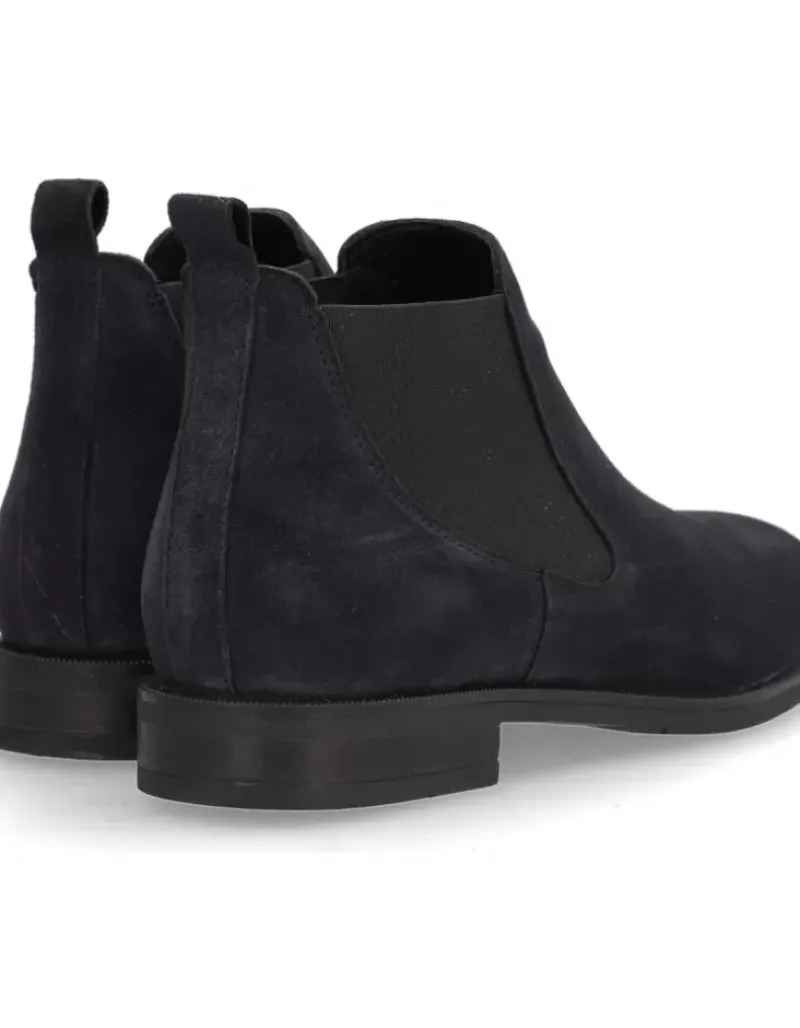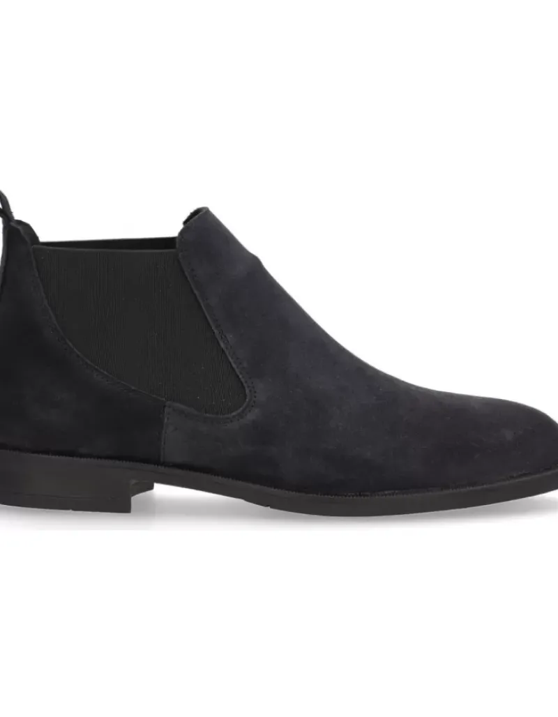 Botin Para Femme Alpe Parker, Fabricado En Piel (Baby Silk) De Color Marino Con Tacon De 6 Cm, Suela Antideslizante Y Puntera Redonda, Sin Cierre Y Cana Baja.