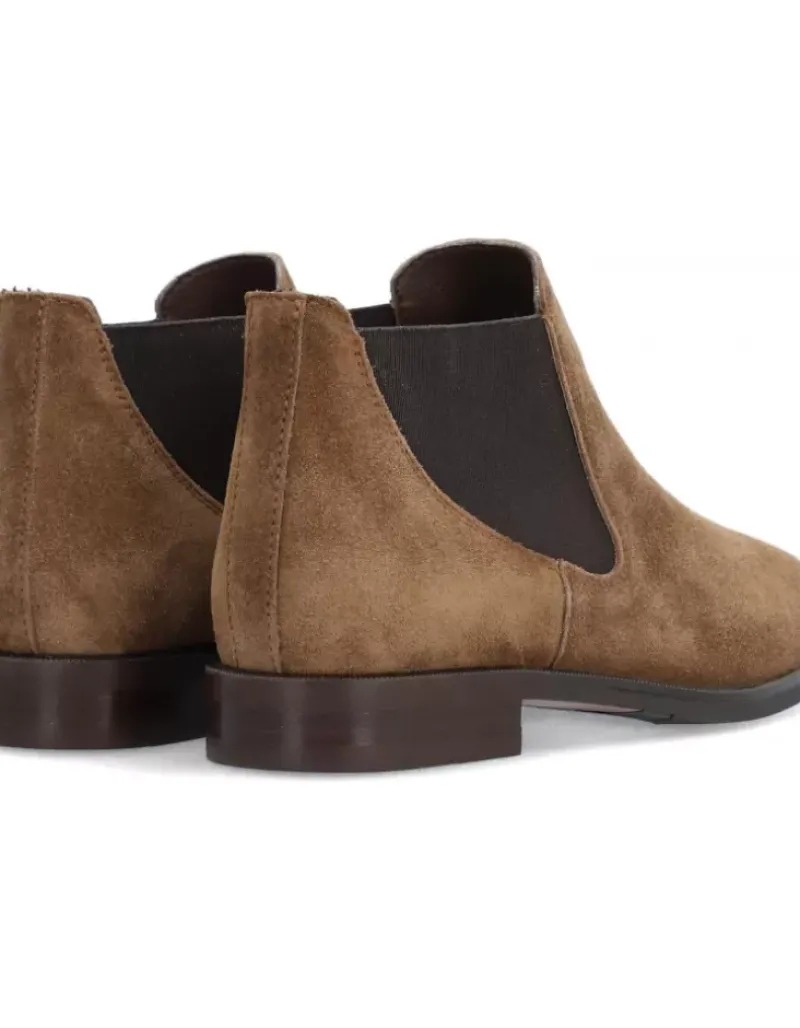 Botin Para Femme Alpe Parker, Fabricado En Piel (Baby Silk) De Color Sandalo Con Tacon De 6 Cm, Suela Antideslizante Y Puntera Redonda, Sin Cierre Y Cana Baja.