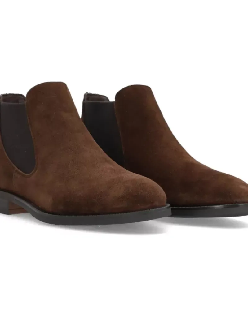 Botin Para Femme Alpe Parker, Fabricado En Piel (Baby Silk) De Color Arabica Con Tacon De 6 Cm, Suela Antideslizante Y Puntera Redonda, Sin Cierre Y Cana Baja.