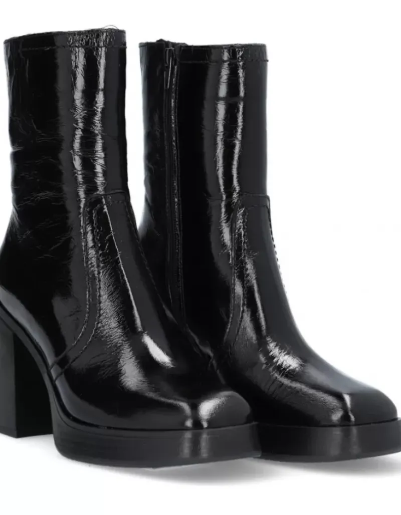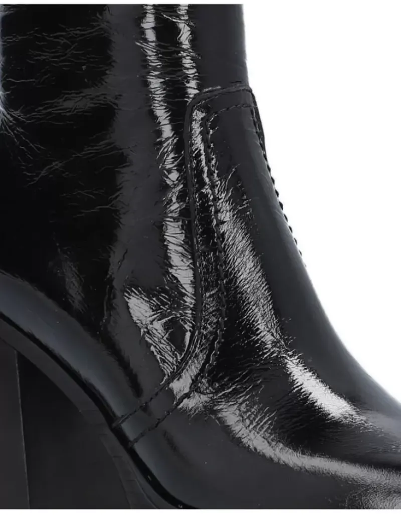 Bota Para Femme Alpe Retro, Fabricada En Piel (Vernice) De Color Negro Con Tacon De 9,5 Cm, Suela Antideslizante Y Puntera Cuadrada, Con Cierre Mediante Cremallera Y Cana Media.