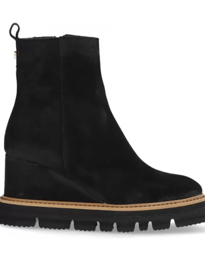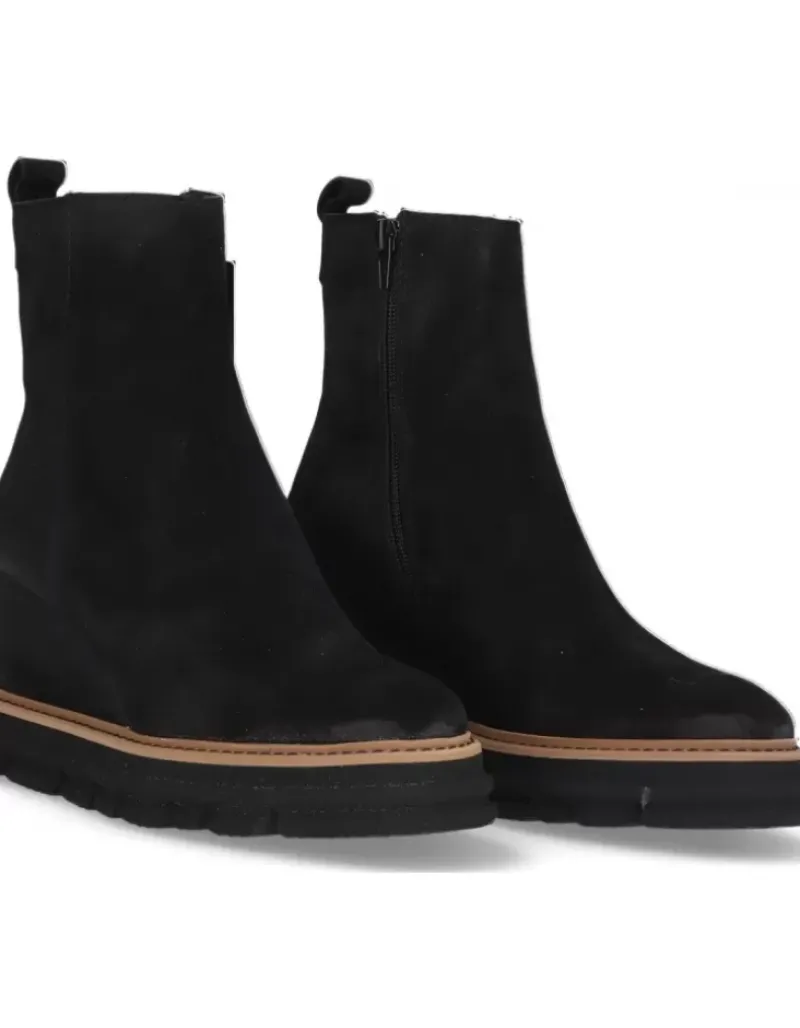 Botin Para Femme Alpe Sidney, Fabricado En Piel (Baby Silk) De Color Negro Con Cuna De 8 Cm, Suela Antideslizante Y Puntera Redonda, Con Cierre Mediante Cremallera Baja.