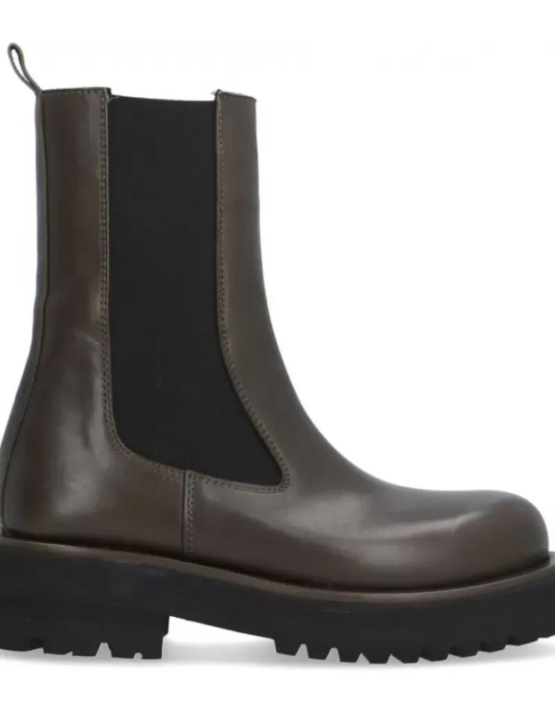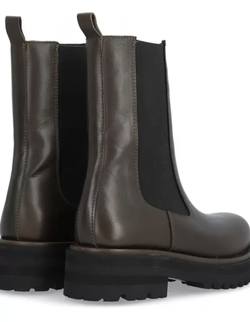 Bota Para Mujer Alpe Sienna, Fabricada En Piel (Becerro) De Color Olive Con Tacon De 5 Cm, Suela Antideslizante Y Puntera Redonda, Sin Cierre Y Cana Media.