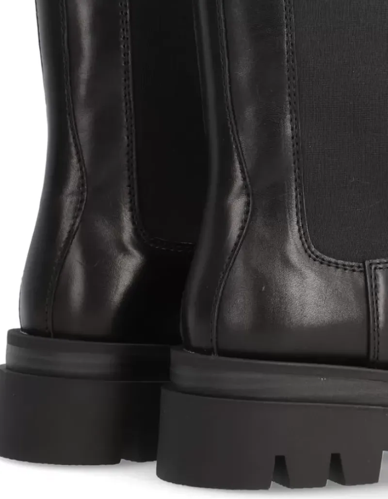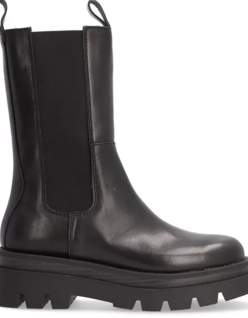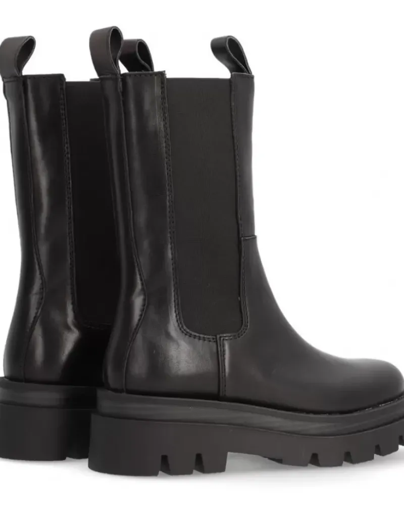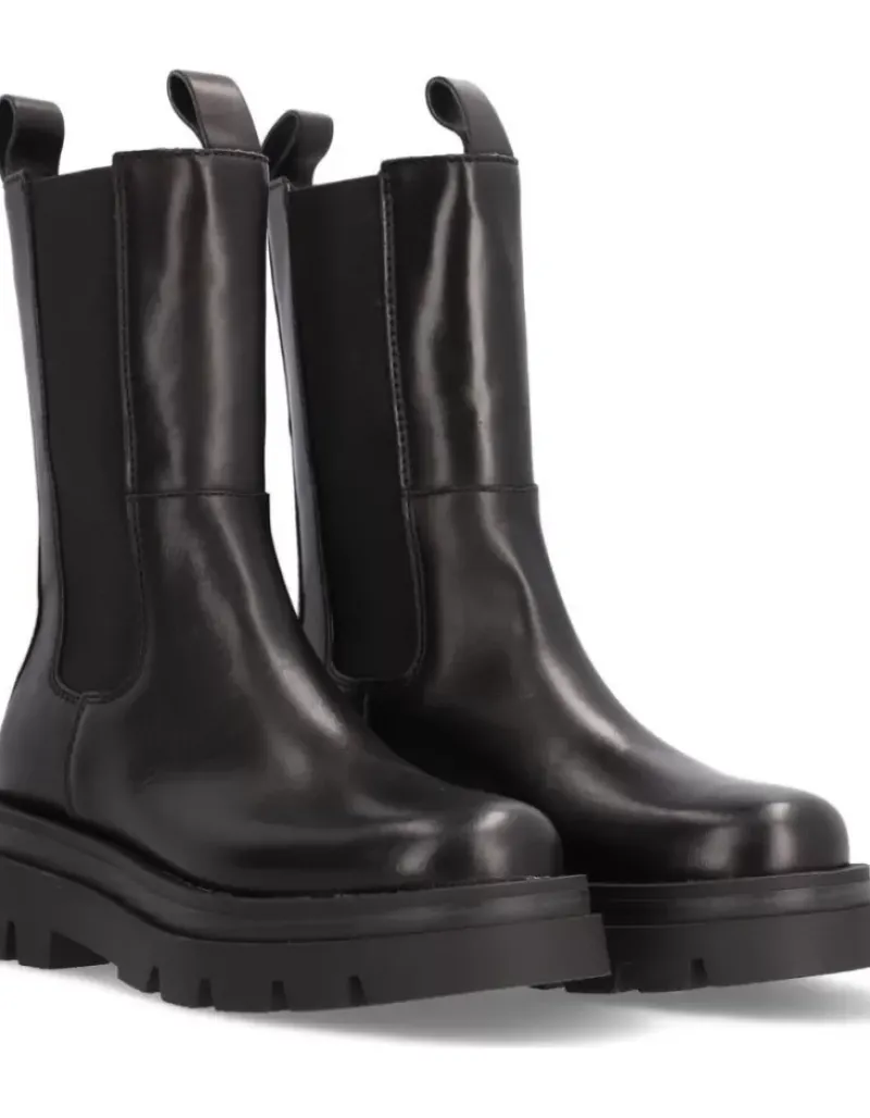 Bota Para Femme Alpe Soho, Fabricada En Piel (Becerro) De Color Negro Con Tacon De 5 Cm, Suela Antideslizante Y Puntera Redonda, Sin Cierre Media.