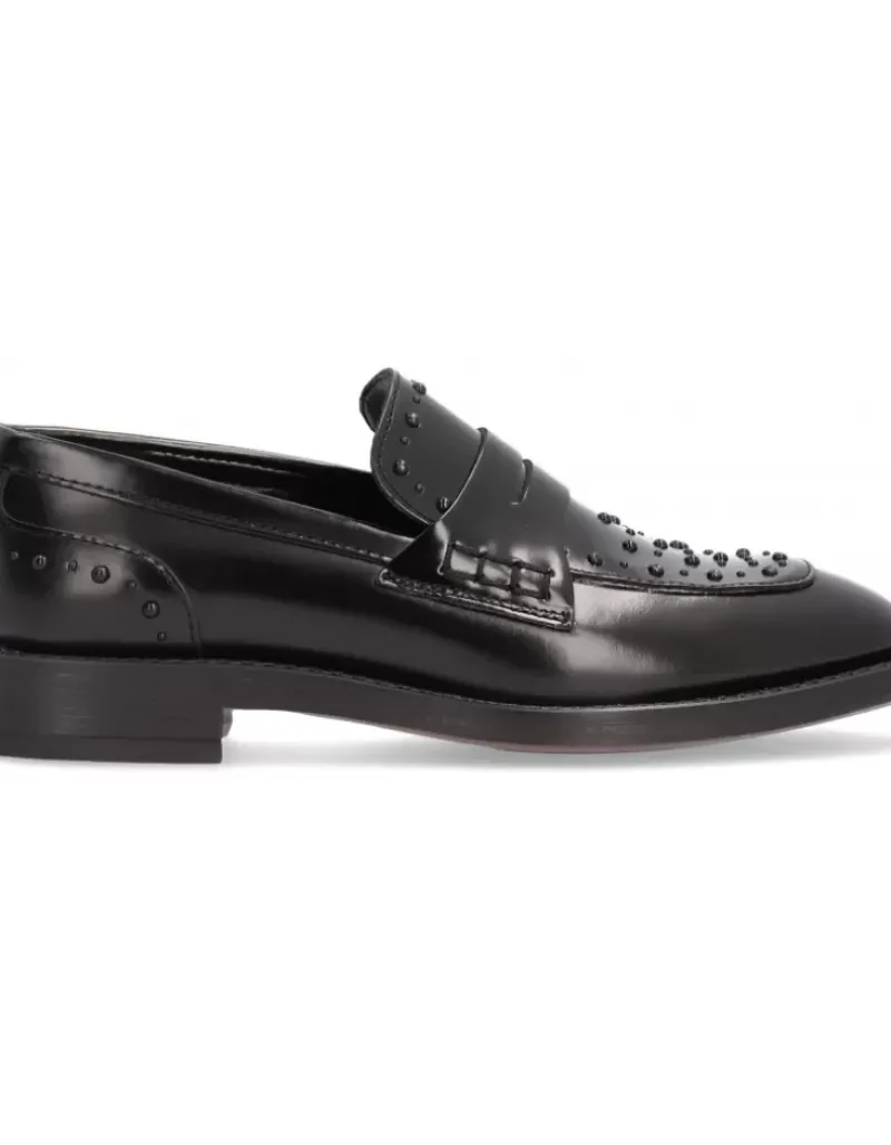 Zapato Para Mujer Alpe Thelma, Fabricado En Piel (Antic) De Color Negro Con Tacon De 3 Cm, Suela Antideslizante Y Puntera Cuadrada, Sin Cierre.
