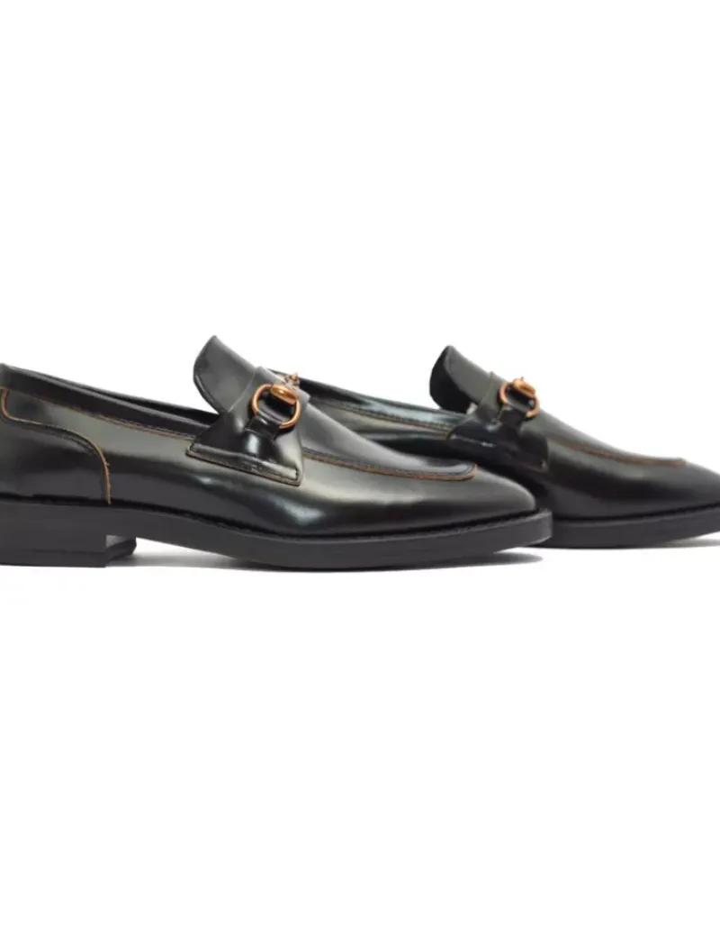 Zapato Para Mujer Alpe Thelma, Fabricado En Piel (Antic) De Color Negro Con Tacon De 3 Cm, Suela Antideslizante Y Puntera Cuadrada, Sin Cierre.