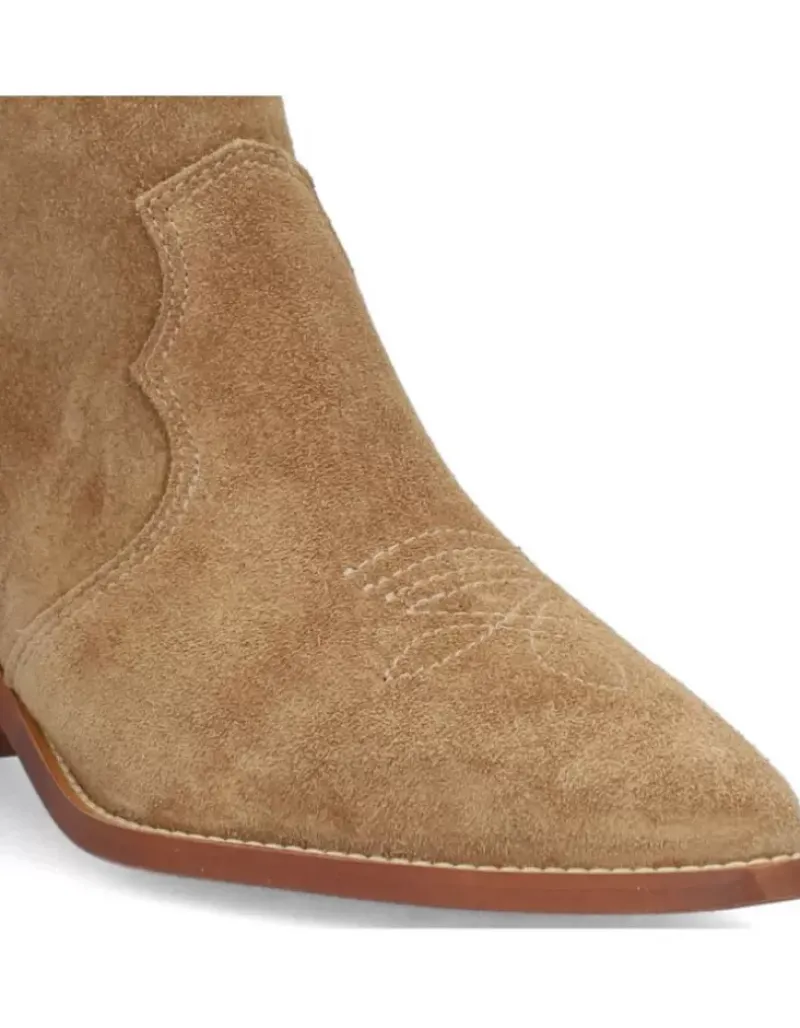 Botin Para Femme Alpe Trendy, Fabricado En Piel (Baby Silk) De Color Cuero Con Tacon De 4,5 Cm, Suela Antideslizante Y Puntera Afilada, Con Cierre Mediante Cremallera Y Cana Baja.