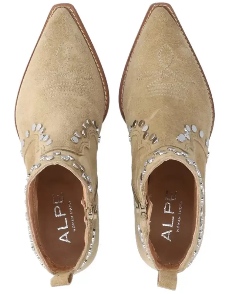 Botin Para Femme Alpe Trendy, Fabricado En Piel (Baby Silk) De Color Tabaco Con Tacon De 4,5 Cm, Suela Antideslizante Y Puntera Afilada, Con Cierre Mediante Cremallera Y Cana Baja.