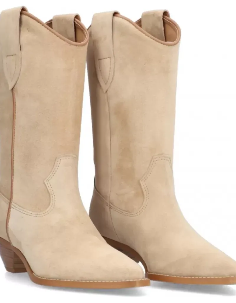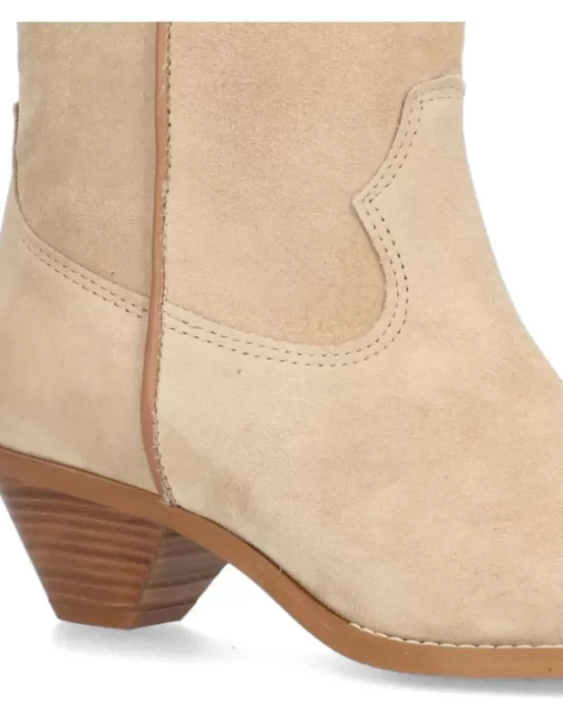 Bota Para Femme Alpe Trendy, Fabricada En Piel (Baby Silk) De Color Arena Con Tacon De 4,5 Cm, Suela Antideslizante Y Puntera Afilada, Sin Cierre Y Cana Media.