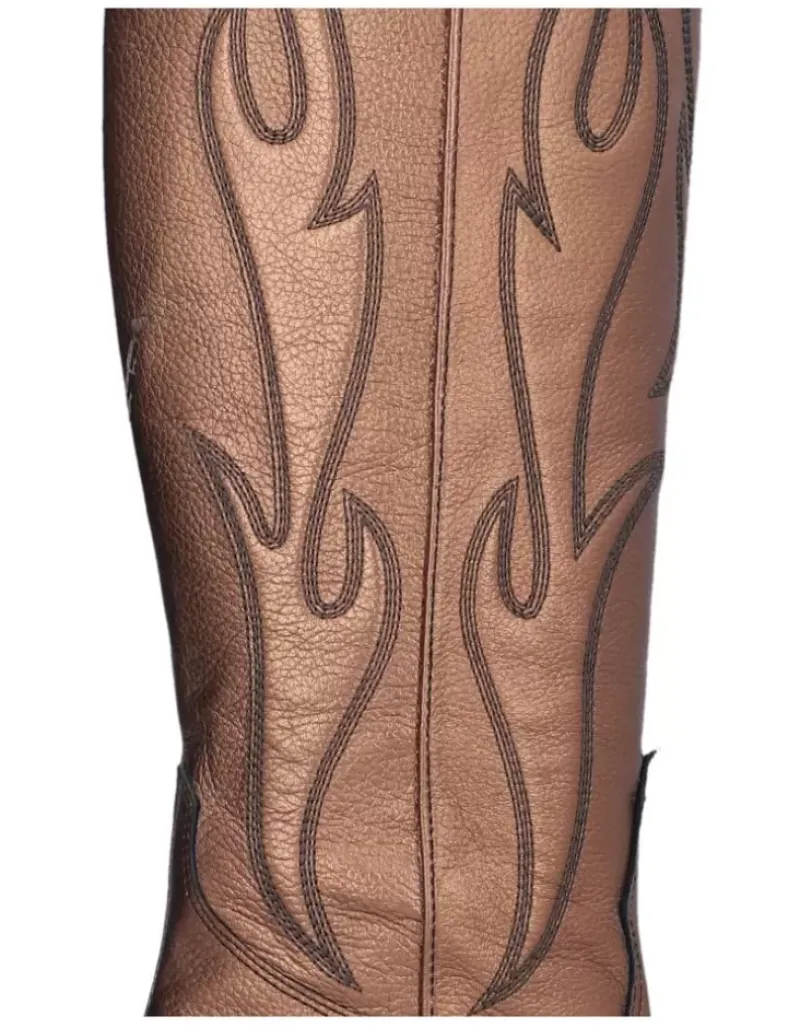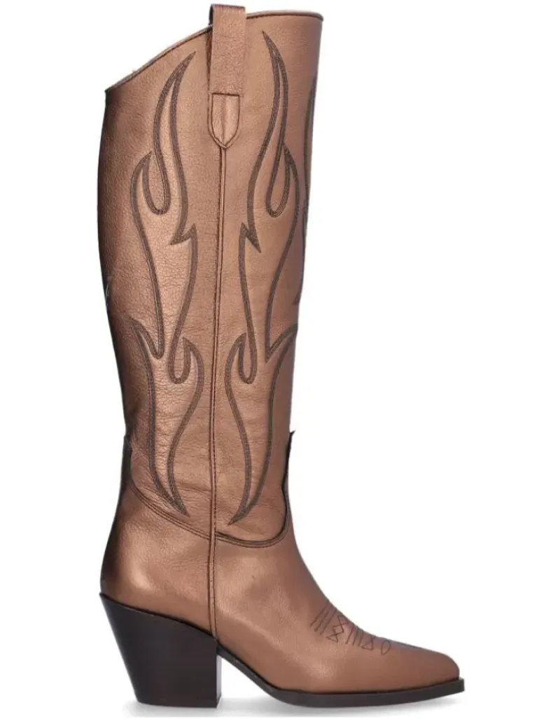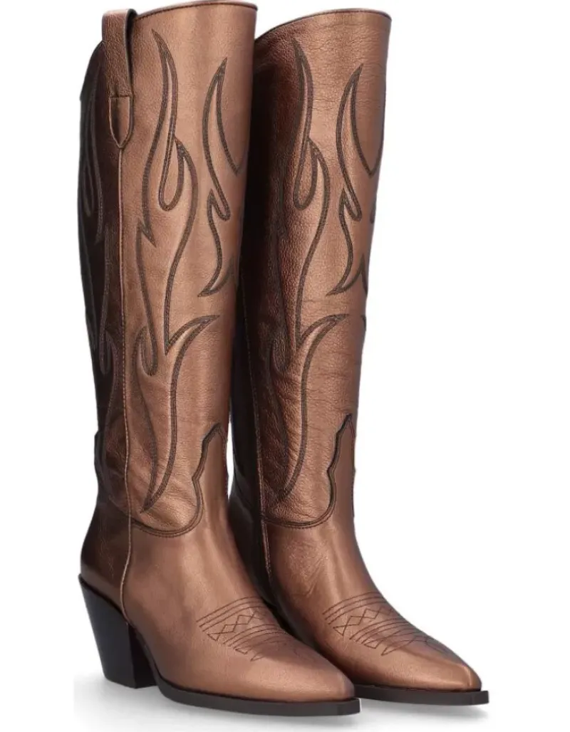Bota Para Femme Alpe Vermont, Fabricada En Piel (Gibson) De Color Bronzo Con Tacon De 6,5 Cm, Suela Antideslizante Y Puntera Afilada, Con Cierre Mediante Cremallera Y Cana Alta.