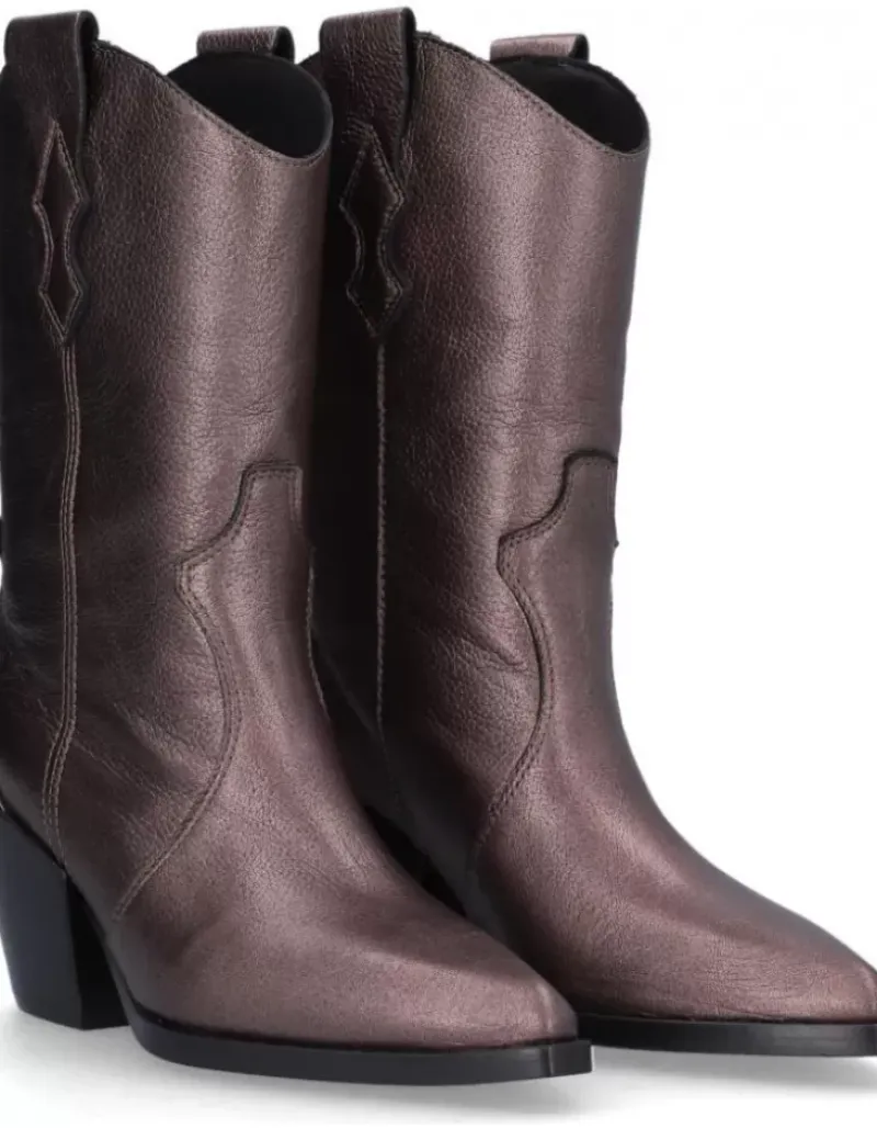 Bota Para Femme Alpe Vermont, Fabricada En Piel (Gibson) De Color Smog Con Tacon De 6,5 Cm, Suela Antideslizante Y Puntera Afilada, Sin Cierre Y Cana Media.