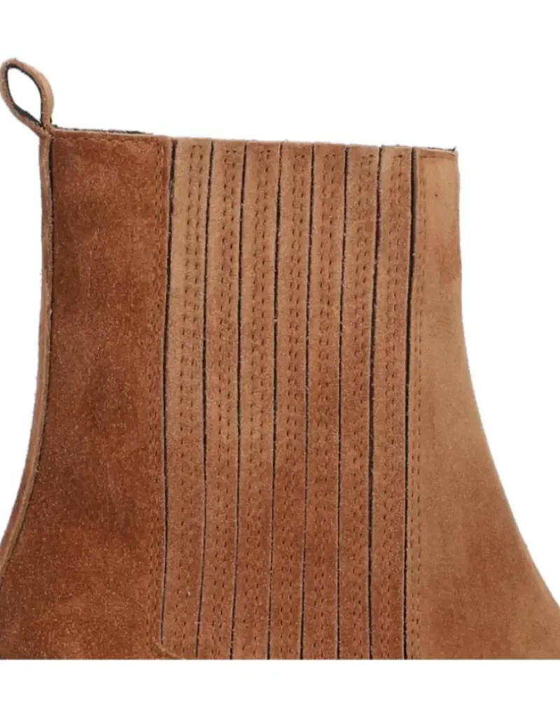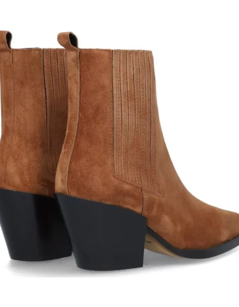 Botin Para Femme Alpe Vermont, Fabricado En Piel (Baby Silk) De Color Sella Con Tacon De 6,5 Cm, Suela Antideslizante Y Puntera Afilada, Sin Cierre Y Cana Baja.
