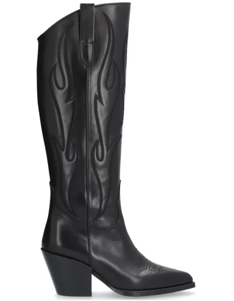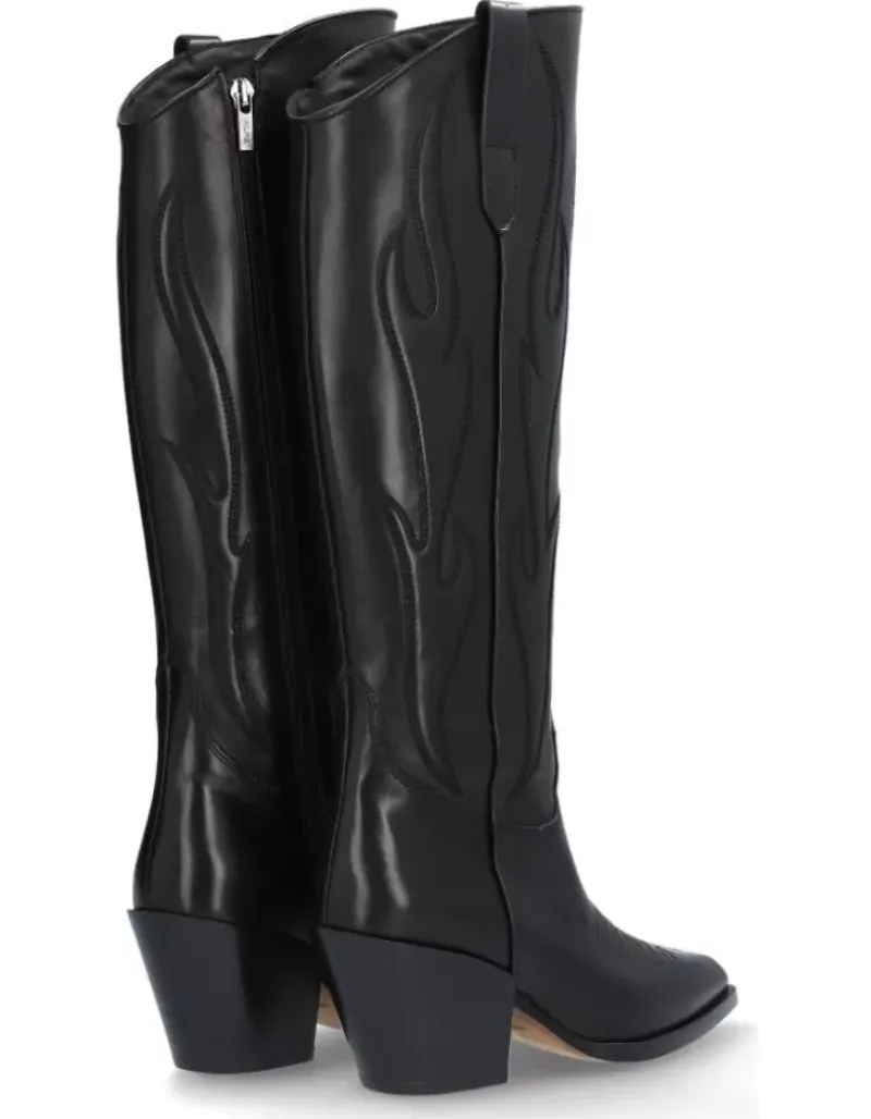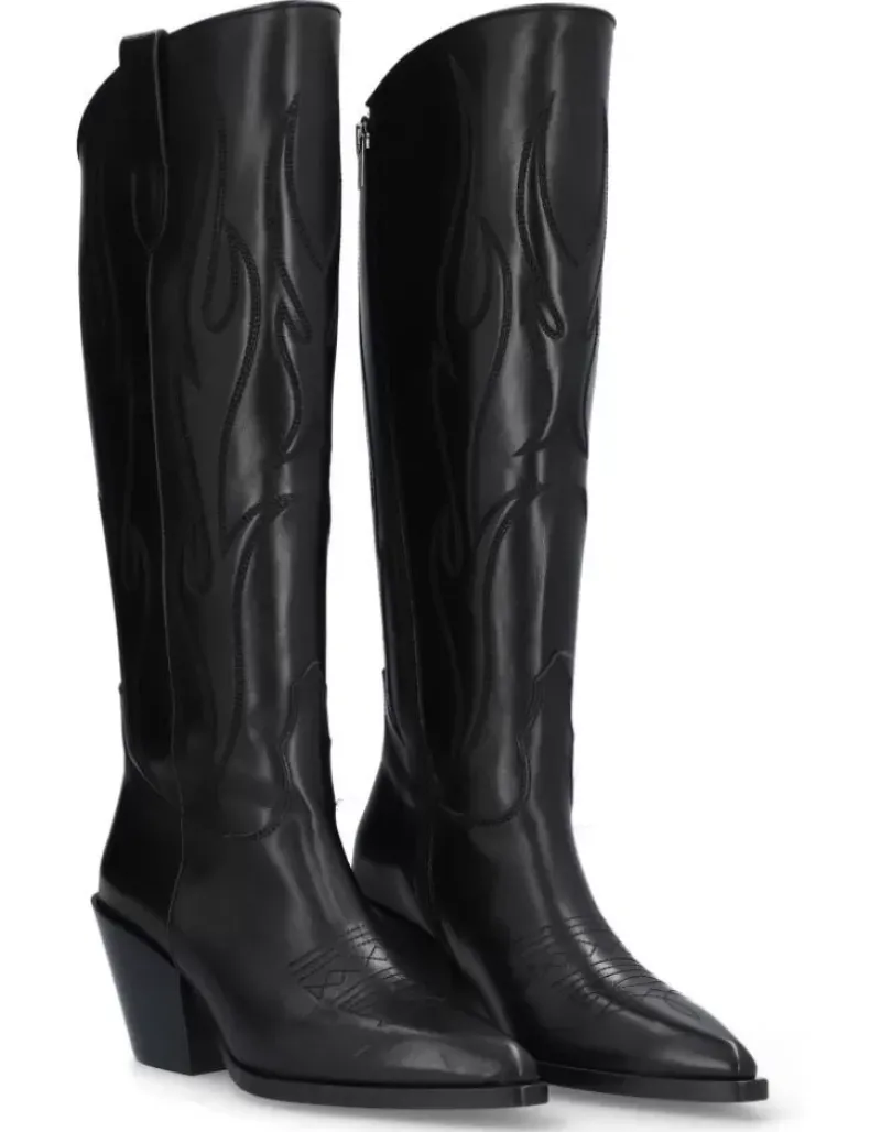 Bota Para Femme Alpe Vermont, Fabricada En Piel (Becerro) De Color Negro Con Tacon De 6,5 Cm, Suela Antideslizante Y Puntera Afilada, Con Cierre Mediante Cremallera Y Cana Alta.
