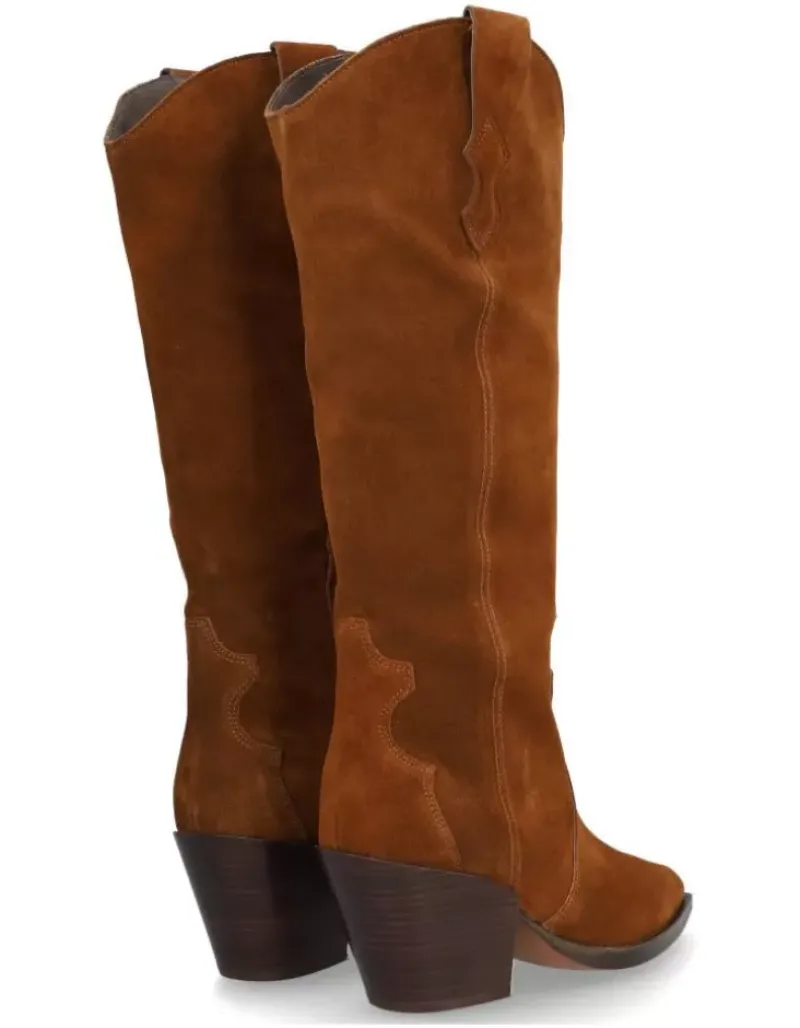 Bota Para Femme Alpe Vermont, Fabricada En Piel (Baby Silk) De Color Cuero Con Tacon De 6,5 Cm, Suela Antideslizante Y Puntera Afilada, Sin Cierre Y Cana Alta.
