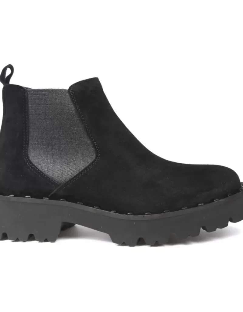 Botin Para Femme Alpe Verona, Fabricado En Piel (Baby Silk) De Color Negro Con Tacon De 4,5 Cm, Suela Pu Y Puntera Redonda, Sin Cierre Y Cana Baja.