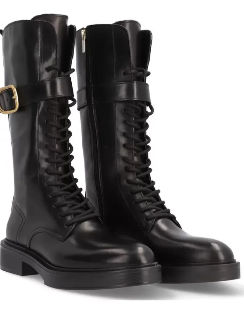 Bota Para Mujer Alpe Vogue, Fabricada En Piel (Becerro) De Color Negro Con Tacon De 3 Cm, Suela Antideslizante Y Puntera Redonda, Con Cierre Mediante Cremallera Y Cana Alta.