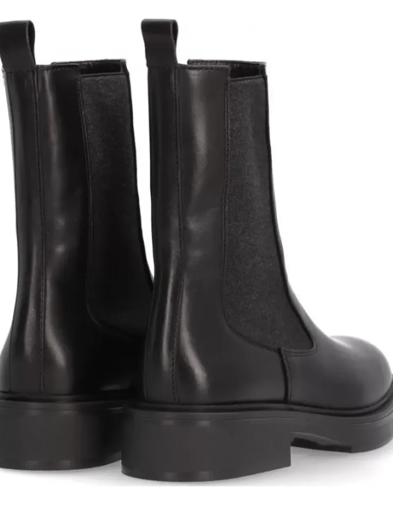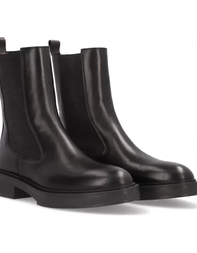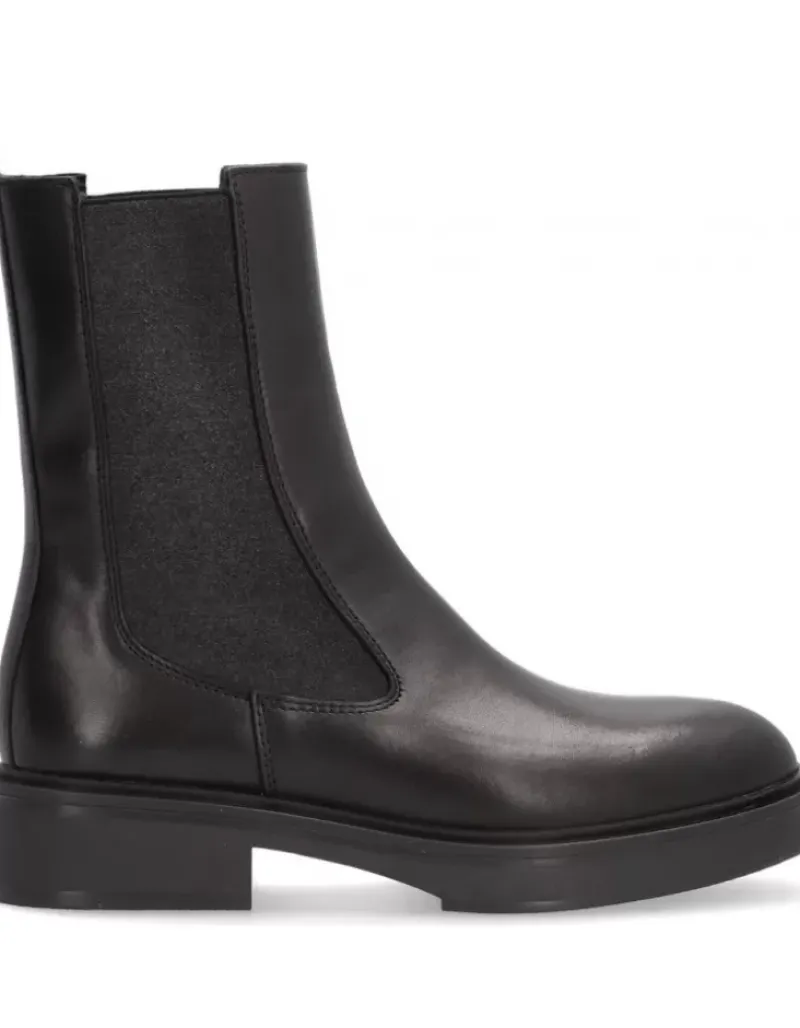 Bota Para Mujer Alpe Vogue, Fabricada En Piel (Becerro) De Color Negro Con Tacon De 3 Cm, Suela Antideslizante Y Puntera Redonda, Sin Cierre Y Cana Media.