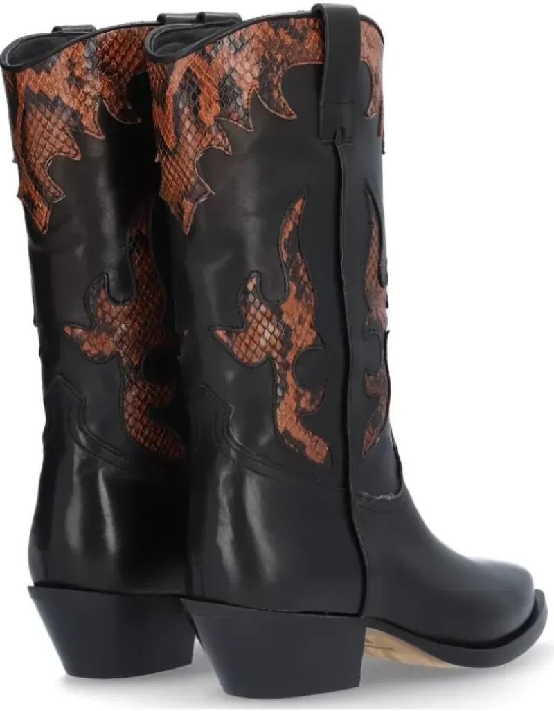 Bota Para Femme Alpe Western, Fabricada En Piel (Piton) De Color Cuero Con Tacon De 4,5 Cm, Suela Antideslizante Y Puntera Afilada, Sin Cierre Y Cana Media.