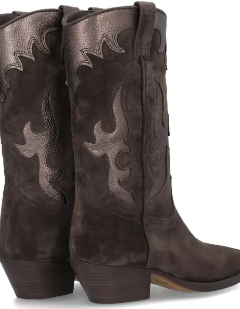 Bota Para Femme Alpe Western, Fabricada En Piel (Baby Silk) De Color Iman Con Tacon De 4,5 Cm, Suela Antideslizante Y Puntera Afilada, Sin Cierre Y Cana Media.