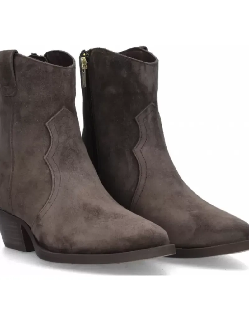 Botin Para Femme Alpe Western, Fabricado En Piel (Baby Silk) De Color Iman Con Tacon De 4,5 Cm, Suela Antideslizante Y Puntera Afilada, Con Cierre Mediante Cremallera Y Cana Baja.
