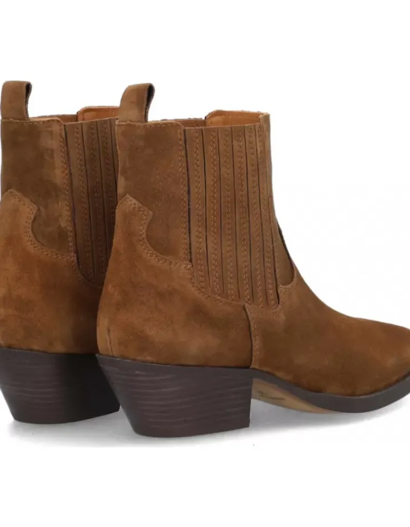 Botin Para Femme Alpe Western, Fabricado En Piel (Baby Silk) De Color Cuero Con Tacon De 4,5 Cm, Suela Antideslizante Y Puntera Afilada, Sin Cierre Y Cana Baja.