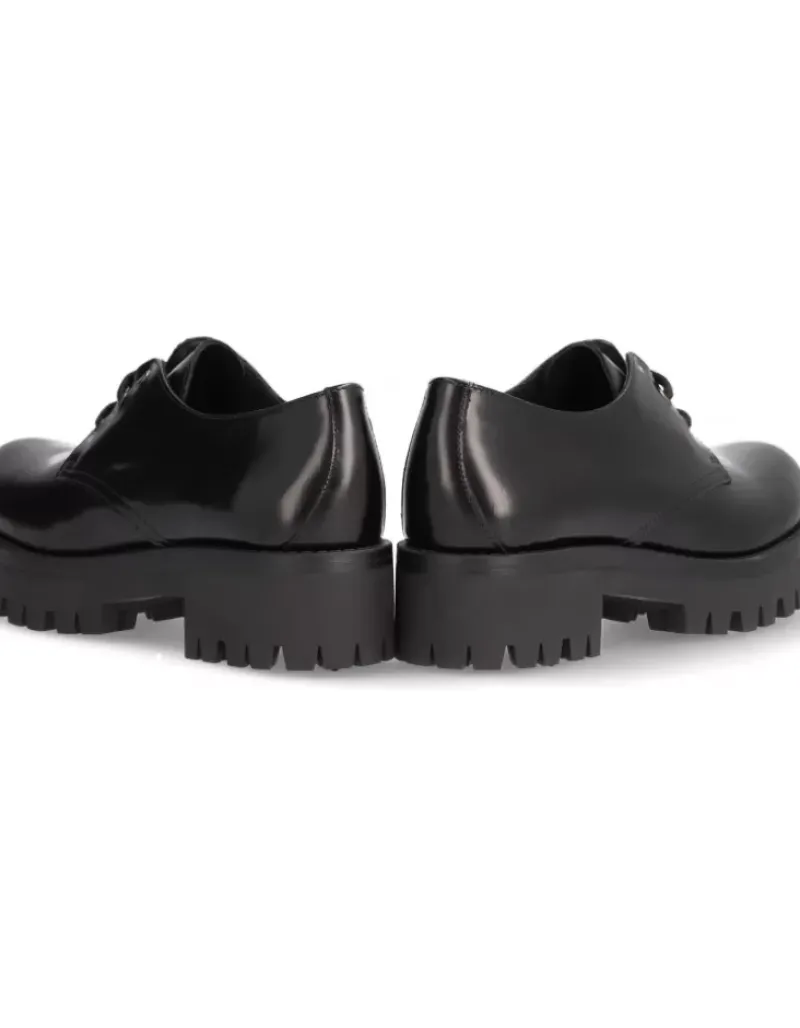 Zapato Para Mujer Alpe Eden, Fabricado En Piel (Piel) De Color Negro Con Sin Tacon De 2,5 Cm, Suela Pu Y Puntera Redonda, Con Cierre Mediante Cordon.