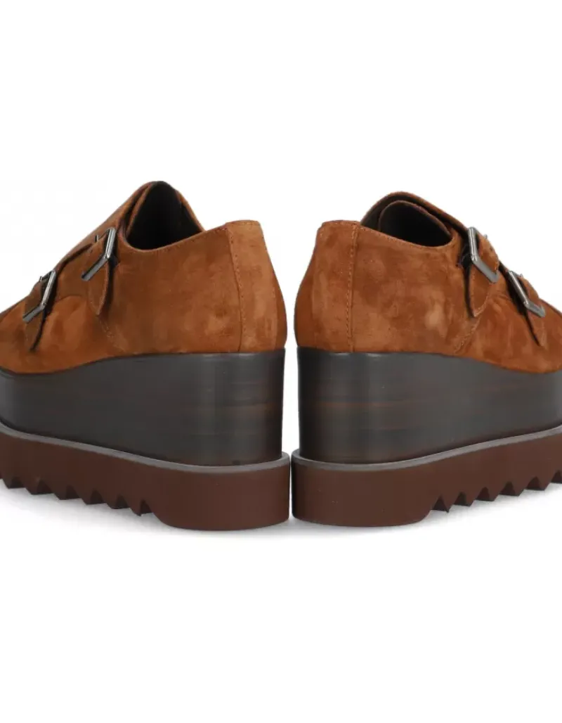 Zapato Para Mujer Alpe London, Fabricado En Piel (Piel) De Color Cuero Sin Tacon, Suela Antideslizante Y Puntera Redonda, Con Cierre Mediante Hebilla.