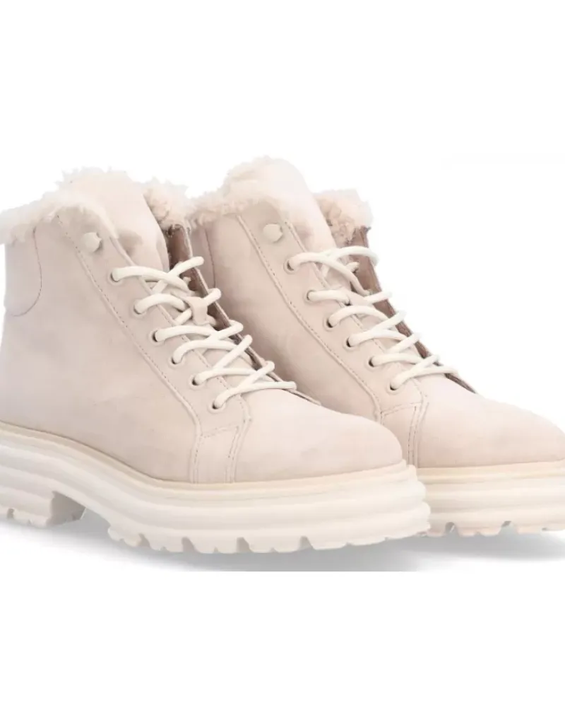 Bota Para Mujer Alpe Alabama, Fabricada En Piel (Baby Silk) De Color Calcare Con Tacon De 5 Cm, Suela Antideslizante Y Puntera Redonda, Con Cierre Mediante Cordon Y Cana Baja.