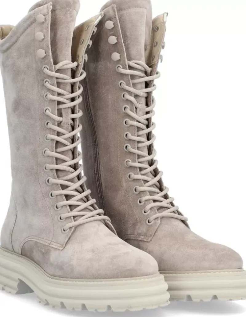 Bota Para Mujer Alpe Alabama, Fabricada En Piel (Baby Silk) De Color Taupe Con Tacon De 5 Cm, Suela Antideslizante Y Puntera Redonda, Con Cierre Mediante Cremallera Y Cana Alta.