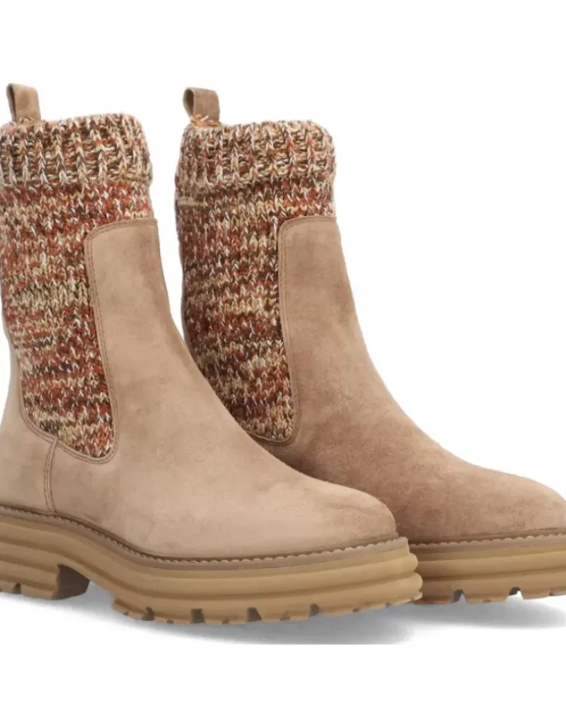 Bota Para Femme Alpe Alabama, Fabricada En Piel (Baby Silk) De Color Bryce Con Tacon De 5 Cm, Suela Antideslizante Y Puntera Redonda, Sin Cierre Y Cana Media.