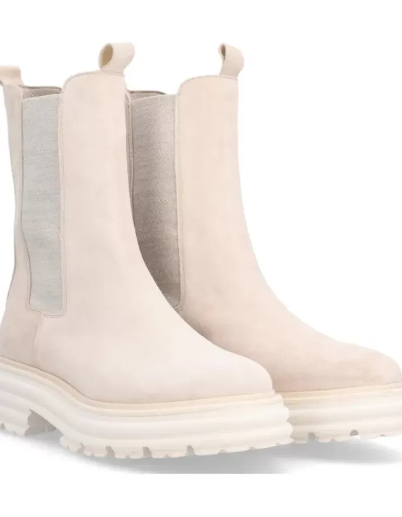 Bota Para Mujer Alpe Alabama, Fabricada En Piel (Baby Silk) De Color Calcare Con Tacon De 5 Cm, Suela Antideslizante Y Puntera Redonda, Sin Cierre Y Cana Media.