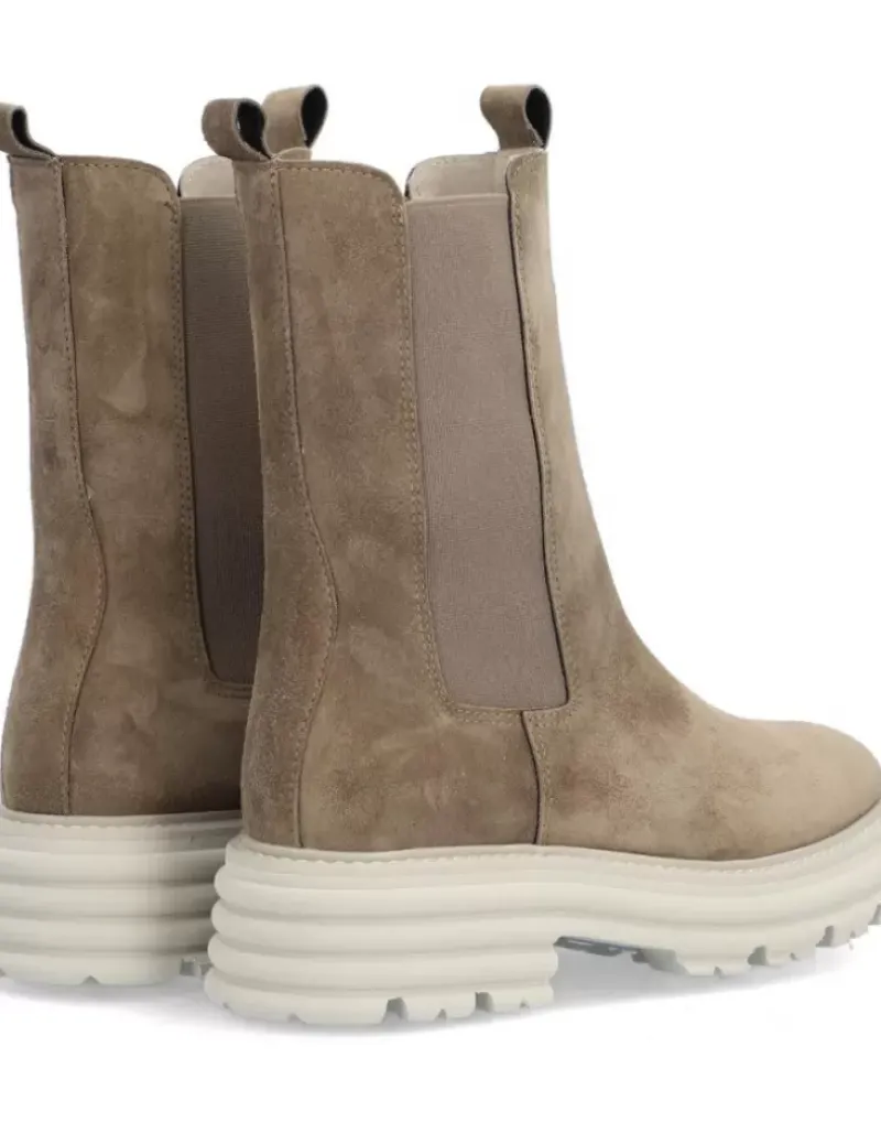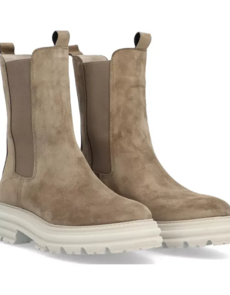 Bota Para Mujer Alpe Alabama, Fabricada En Piel (Baby Silk) De Color Sander Con Tacon De 5 Cm, Suela Antideslizante Y Puntera Redonda, Sin Cierre Y Cana Media.