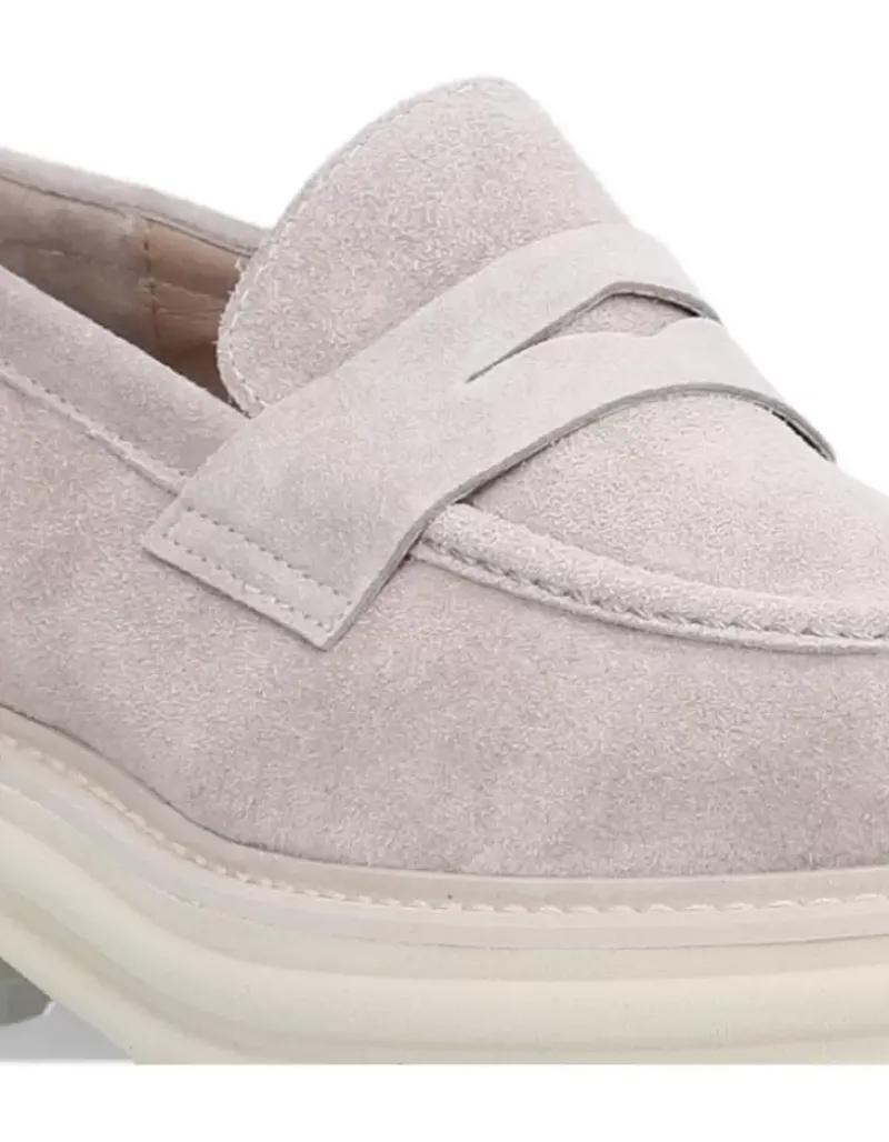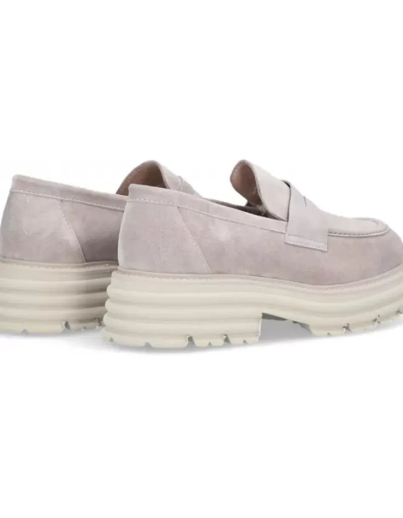 Zapato Para Femme Alpe Alabama, Fabricado En Piel (Baby Silk) De Color Taupe Con Tacon De 5 Cm, Suela Antideslizante Y Puntera Redonda, Sin Cierre.